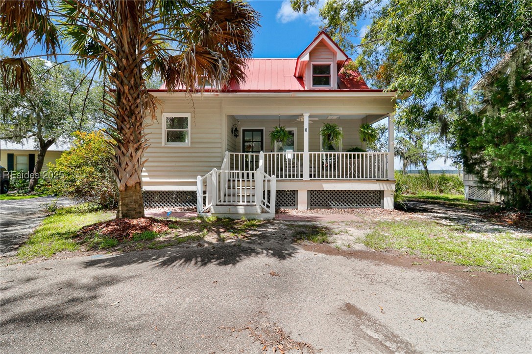 Welcome to your serene retreat in Palm Key, SC—where art meets nature and sunsets light up the marsh. This 2-bed, 2-bath cottage offers sweeping tidal creek views, soaring ceilings, and natural light throughout. A metal roof adds charm and durability, while open living spaces inspire creativity and calm. Watch coastal birds from the porch, paddle quiet creeks, or simply soak in the peace. Perfect as a short-term rental, artist’s haven, or full-time escape—this one-of-a-kind home invites you to unwind and connect.