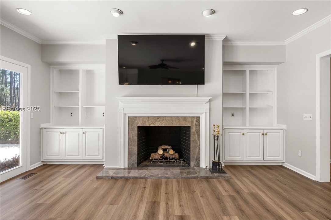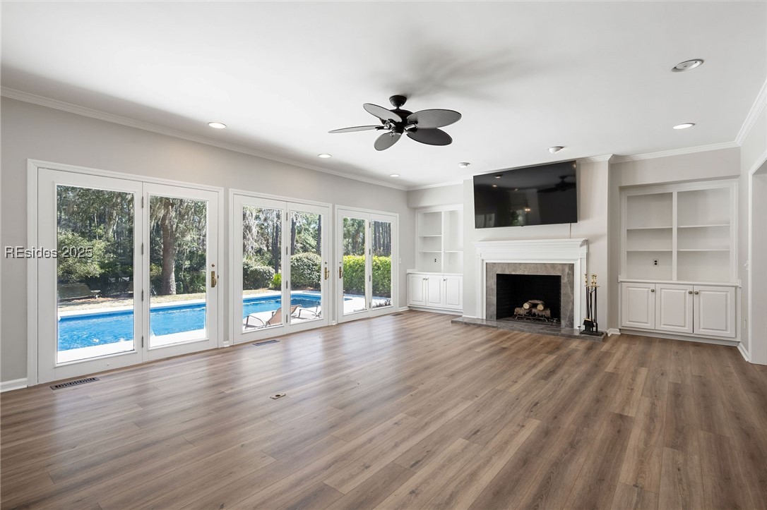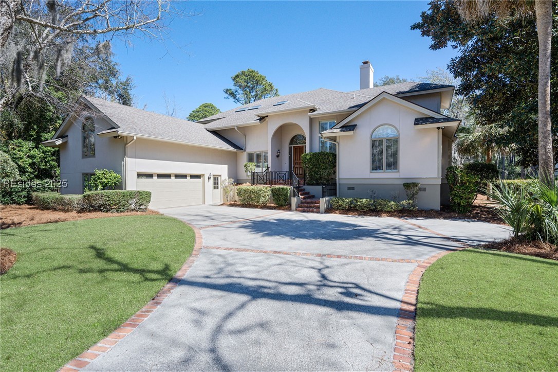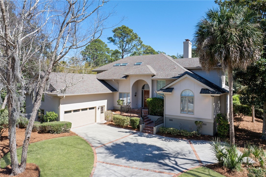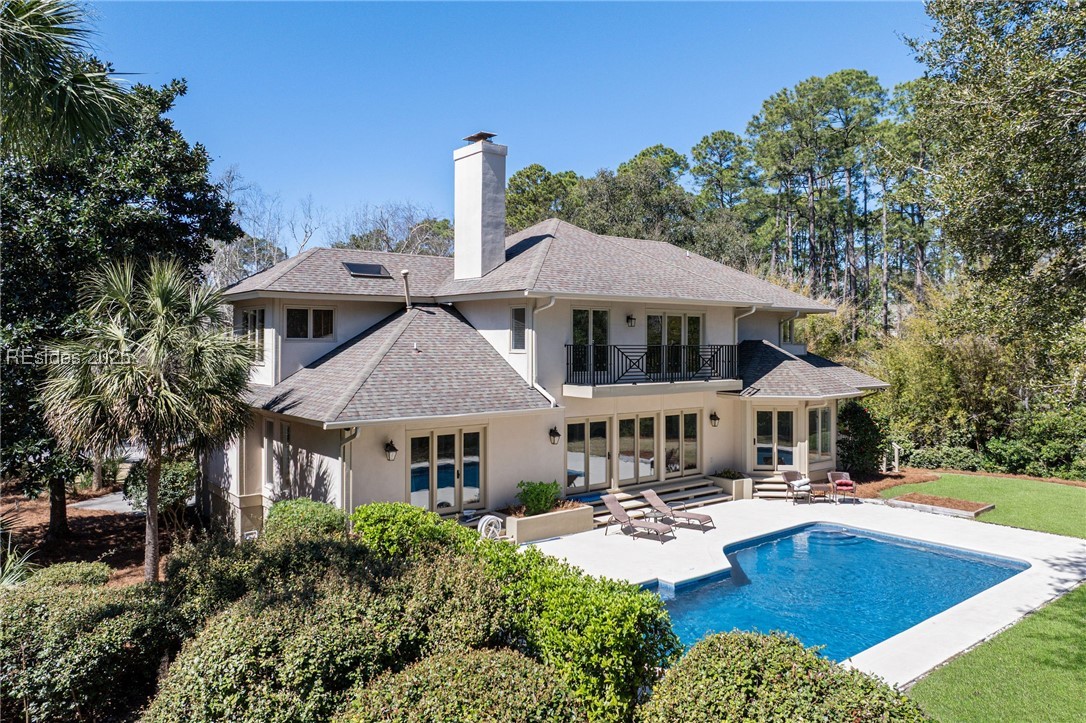 Set on a nearly half-acre corner lot with a majestic live oak, serene lagoon views, and a large private pool, this spacious 4,400 square foot home in Long Cove Club showcases a truly sensational backdrop. The welcoming foyer opens the bright great room overlooking the pool with a wall of French doors featuring a gas fireplace flanked by built-ins and a convenient pass-thru to the kitchen where youll find high-end appliances, and a designated dining area framed by bay windows. Thoughtfully updated for longevity with luxury vinyl plank flooring, fresh interior paint (2025), a new water heater, plumbing, HVAC, energy-efficient spray foam, and generous windows that fill the space with natural light. Plus, the tall ceilings, plantation shutters, and abundant storage create an inviting and functional layout. The spacious owners retreat opens to the back balcony and includes a walk-in closet that leads to a spa-inspired bathroom with dual vanities, a stand-alone garden tub, and a custom-tiled walk-in shower. You cant miss the additional fireplace, second-level den, outdoor shower, and large bonus room. All within a secure, award-winning private community with a Pete Dye Golf Course, Carolina-inspired clubhouse, sports center, marina, and more!