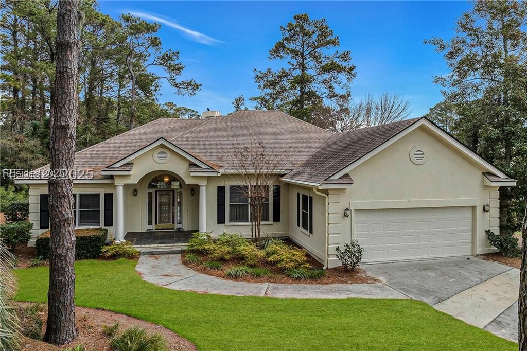 Beautiful custom built home on corner lot in Hilton Head Plantation, This custom-built 3-bedroom-, 2.5 bath home is ideally situated on a desirable corner lot with tranquil lagoon views. Recently painted inside with smoot ceilings added, this home offers a spacious and functional layout perfect for comfortable Lowcountry Living. Enjoy a large open-concept living area with two sided fireplace that connects the Living room and the Carolina room, creating a warm and inviting ambiance. The well designed floor plan offers excellent bedroom separation for added privacy.. Additional updates include full replacement of polybutylene pipes as well as glass replacement in Living room and Carolina room.