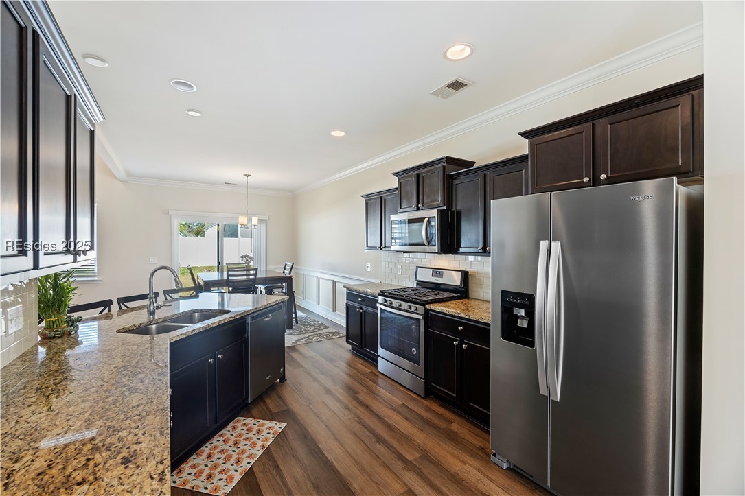 This now vacant and freshly painted 4-bed, 2.5-bath Wateree Model features a popular open layout with a first-floor primary suite and 3 bedrooms upstairs offering excellent bedroom separation. The spacious, fenced backyard is perfect for relaxing or entertaining. Located just a short walk or golf cart ride to New Riverside Barn Park and Village with shops, dining, spa, and a top-notch playground. Close to the beaches of Hilton Head, the charm of Savannah, and the rich history of Beaufort. Dont miss this incredible opportunity! WELCOME HOME!