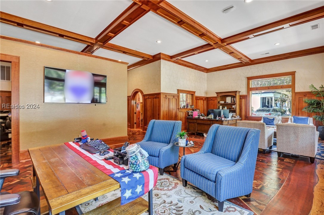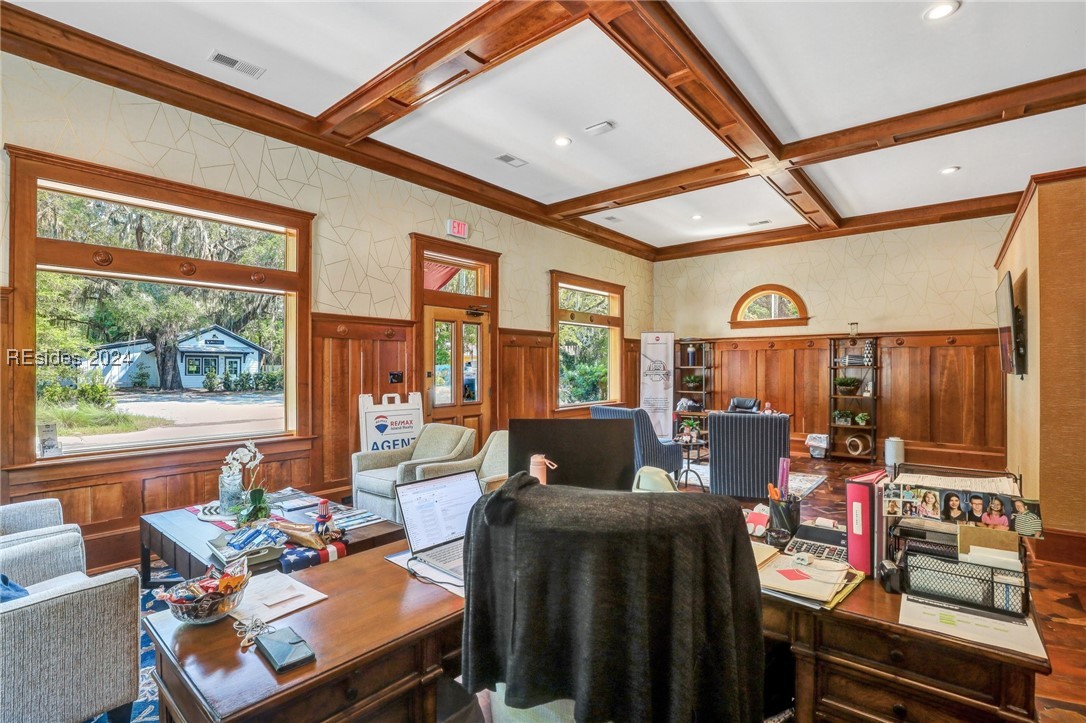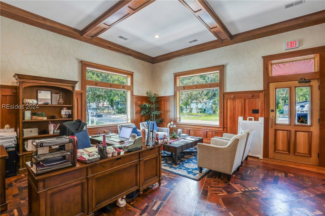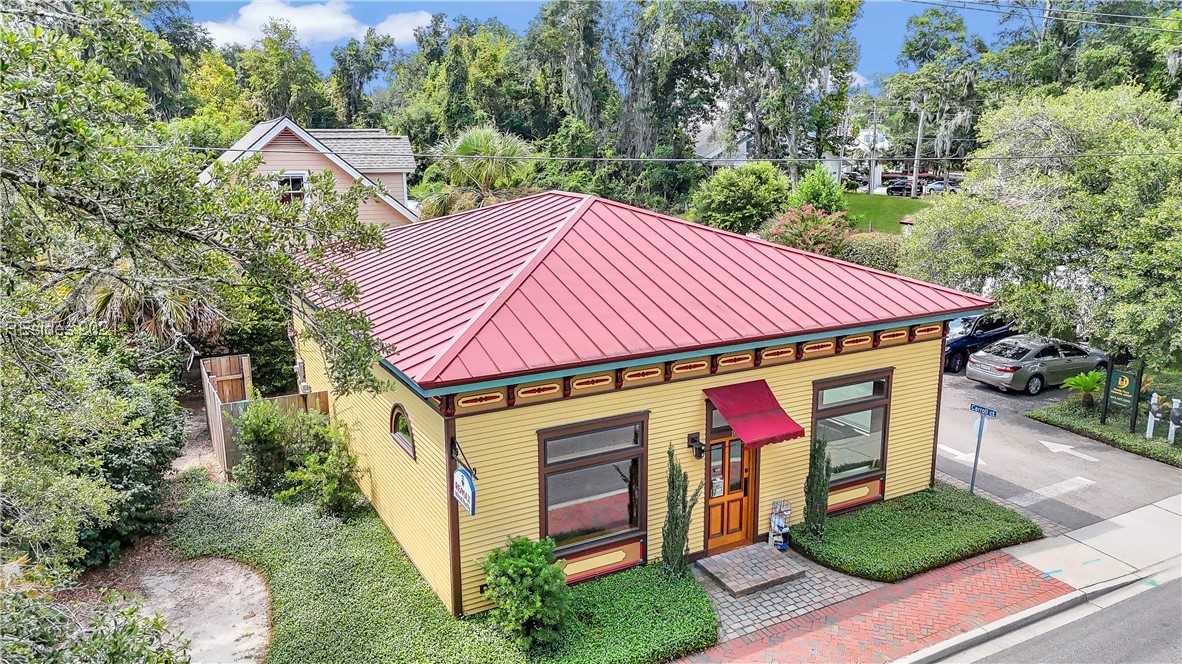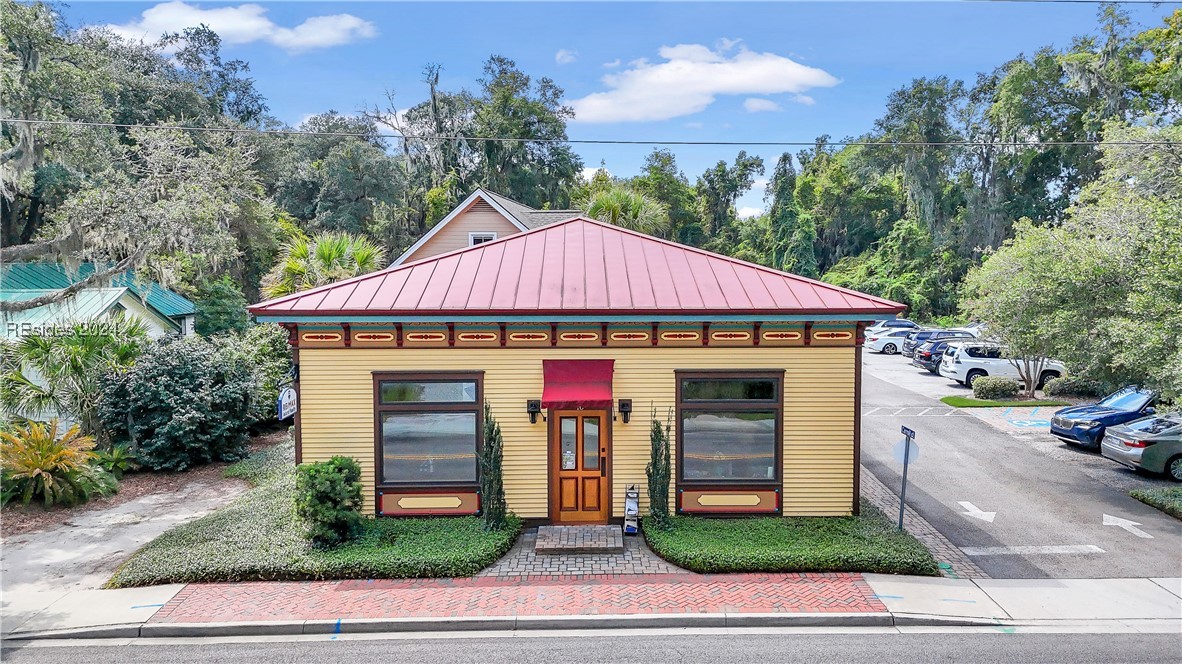Remarkable custom built commercial building in the heart of Old Town Bluffton. This beautifully built property offers great visibility, parking, & signage opportunities. The quality of the construction flows through every inch of this nearly 1400 sq ft establishment w/ custom wood features, hand placed wood flooring, & custom trim work! Zoned Neighborhood Core Historic District & makes for an excellent location for professional office space, medical office, or other business ventures. Just a short stroll/golf cart ride from The Promenade, Library, Parks, and gorgeous May River! Excellent opportunity for your business or income property!
