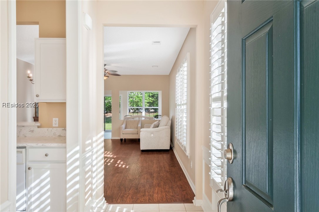 Move-in ready Heather! This home is freshly painted and features 2 bedroom, 2 Bathroom, den, sunroom and eat-in kitchen with private landscape view. Lovely wood floors. Well located on a quiet cul-de-sac street. All appliances convey. Low Beaufort County taxes. Enjoy all the Sun City amenities- 3 golf courses, 3 restaurants, indoor & outdoor pools, tennis, pickleball, softball leagues, woodworking shop, dog parks, too many clubs and groups to mention! Start living the Sun City Lifestyle now!
