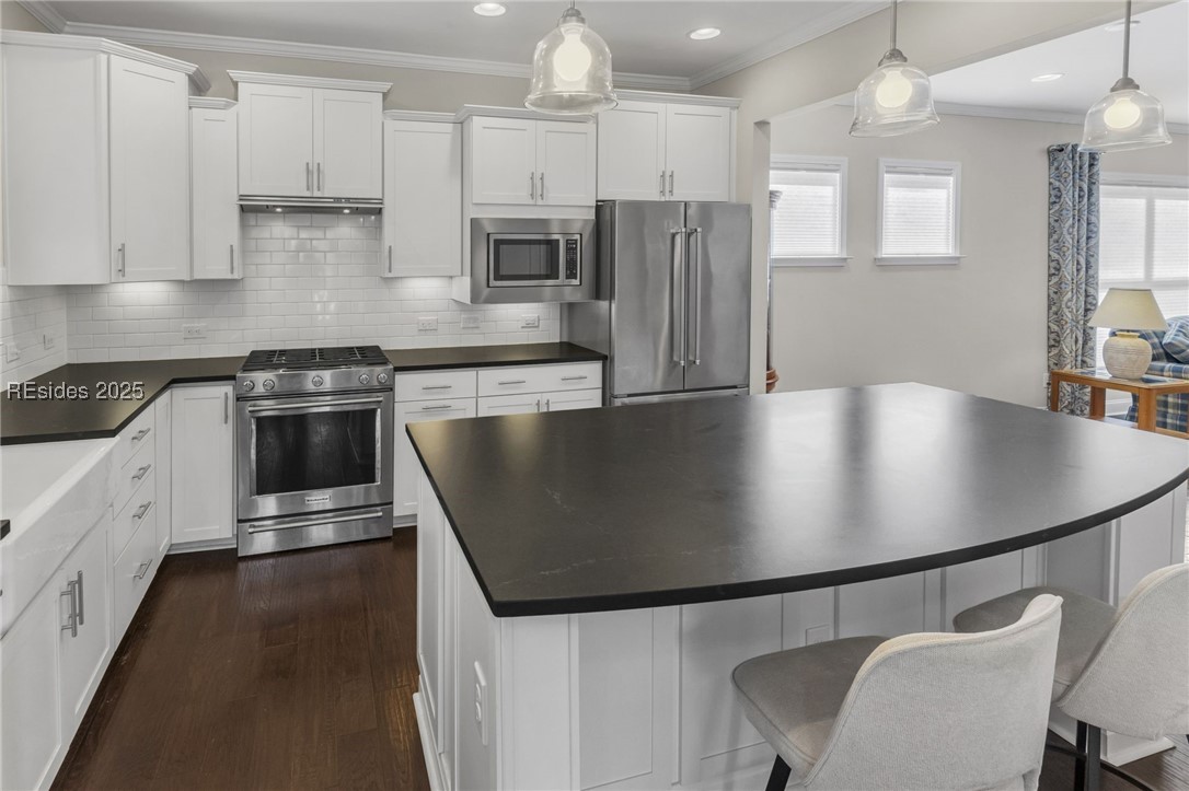 Newer home on private end of cul-de-sac. 2BR/2BA or 3rd BR/DEN/OFFICE popular Taft Street model featuring heated & cooled enclosed Lanai (300+ sqft – Mitsubishi electric heating/cooling by remote control) off the bright Carolina Room & Kitchen w/ beautiful Kohler white farm sink, staggered-height white cabinets w/ pullouts, subway tile backsplash, KitchenAid appliances, large quartz island & GAS stove. Master & guest bath include quartz counters. Other features are a walk-in upstairs floored storage, tankless water heater, extended 4 foot 2-car garage and back and front patios. Recessed lighting, smooth ceilings and crown molding throughout.