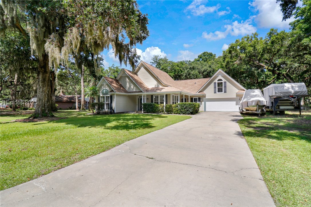 Seller offering $5,000 in closing cost assistance with acceptable offer. Beautiful home on over acre in a prime Lady's Island location with no HOA! Features a brand new roof (2024), new carpet in all bedrooms. Enjoy the cozy fireplace, split floor plan with 3 bedrooms on the main level. The primary suite has custom built-ins in the closet and new cabinetry in the laundry area. A new vanity updates the guest bath. A large upstairs bonus room offers flexibility. Outside, enjoy a large fenced yard, 2-car garage, and extended driveway. Move-in ready with space, privacy, and charm! Continently located to Downtown, Parris Island, MCAS Beaufort, and Naval Hospital.