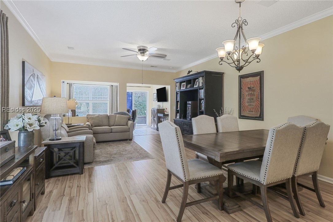 One of the best locations in Sun City across the street from Town Square. 2-minute walk to the Town Square amenity center. Heather model with 2 bedrooms, 2 bathrooms & den. Carolina room & brick paver patio with courtyard wall leading to the front door. Wood & tile floors throughout. Eat-in kitchen with Silestone counters, updated cabinets, SS appliances, natural gas stove & Thomasville custom-built prep station with full-extension soft-close 24” drawers. Updated light fixtures & fans. Owner's suite with bay window new bathroom vanity with quartz top. 2nd bath with updated vanity & tiled walk-in shower. New blinds, window treatments, & crown molding. Backyard brick paver patio with courtyard wall offers views of the private forest preserve. Enjoy the Sun City lifestyle living on a street of former model homes.