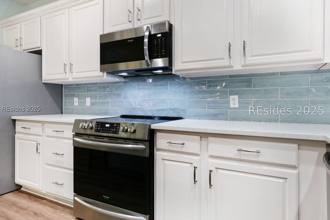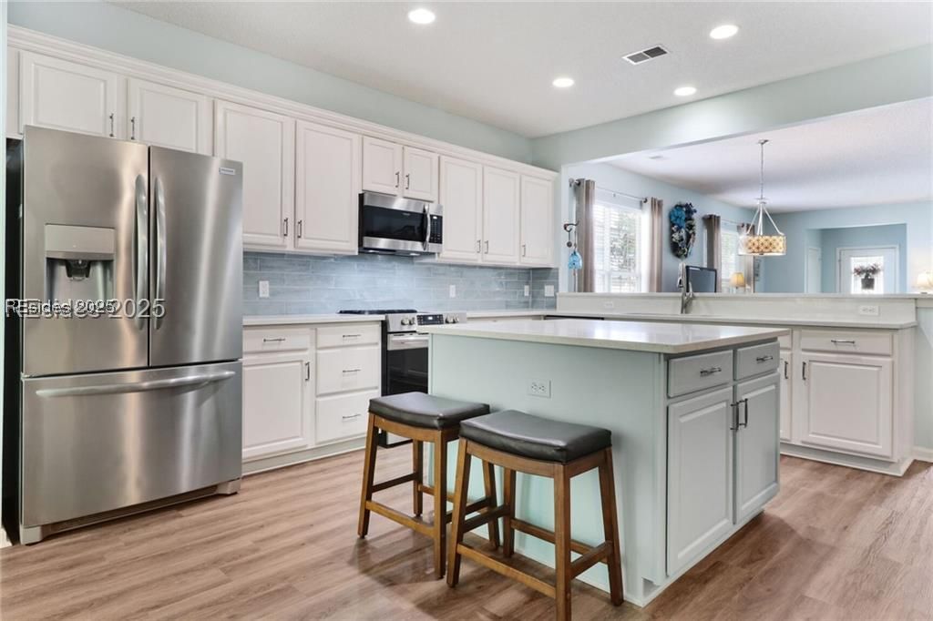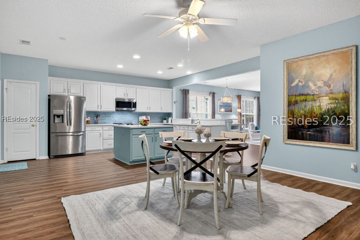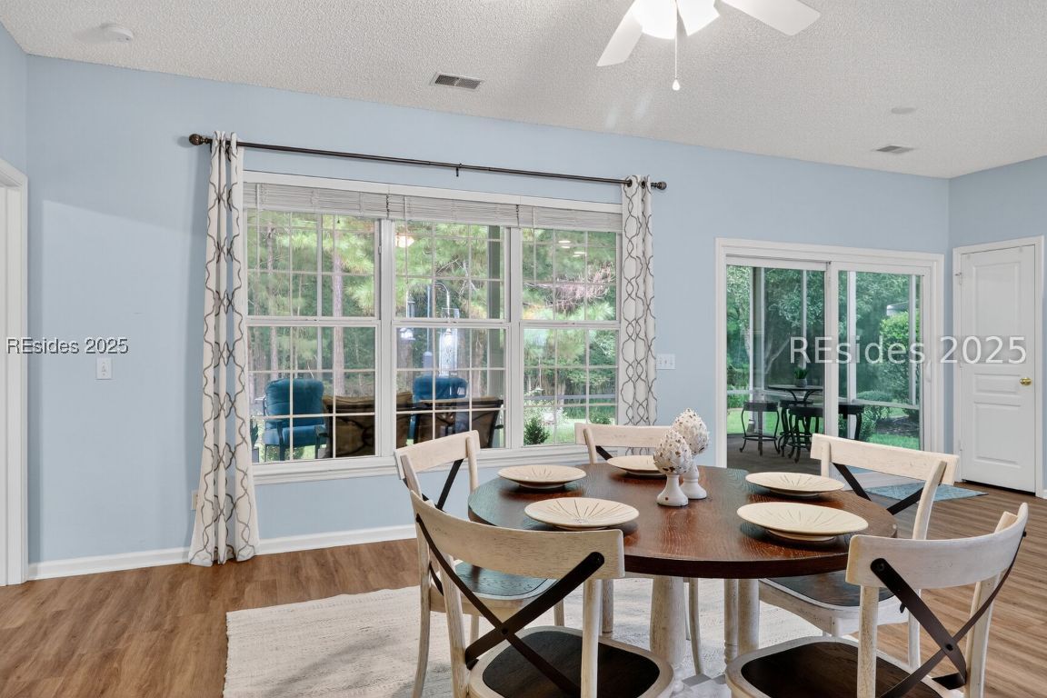 Beautifully updated, rarely seen, Teal model in Sun City Hilton Head featuring a Great rm, Carolina rm & lg office w/updated flooring, two bed, two bath, fresh int & ext paint, blinds, light fixtures, & fans. The kitchen features newer appls, countertops, sink, faucet, & painted cabinets. The primary bath has been fully renovated w/ gorgeous vanities, tile shower & floors. The guest bath is also beautifully remodeled. Enjoy the abundant closet space! The sliding glass door was replaced leading to the 12'x20' screened porch overlooking a private, wooded lot. Roof 2022, AC 2024, Leaf Filter Gutter Guards, & fresh landscaping. Move-in ready!