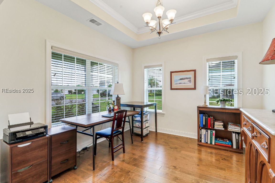 Thoughtfully designed 2022 Orchid model embodies warmth, comfort, and timeless style. Overlooking a peaceful common area, pristine, move-in-ready home features an inviting open layout with wood floors and neutral finishes. The kitchen shines with island seating and flows effortlessly into the dining and living spaces, including a flexible formal dining room or office with tray ceilings. A unique privacy screen offers bedroom separation, while the screened-in porch is outfitted for entertainment. The front covered porch invites slow mornings and quiet evenings. A two-car rear-entry garage with golf cart area, all set within a vibrant community with an active social calendar and welcoming events. The only decision left to make is where to enjoy your morning coffee or your evening beverage.
