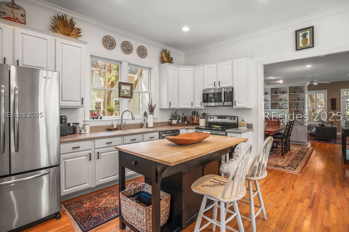This charming Charleston-style home w/in Battery Point, is an entertainer’s dream. Enjoy seamless flow from the welcoming front porch into the living room, dining area, kitchen, & screened rear porch. A new bocce-ball court graces the gated side courtyard. Upstairs, the second floor hosts the primary suite w/ balcony overlooking a majestic Live Oak & a completely renovated bathroom, plus a secondary bedroom w/ private bath & screened porch, along w/ a laundry. The 3rd floor adds 2 bedrooms & another fully renovated bath. Detached 2-car garage is wired for generator & includes a finished guest suite above.