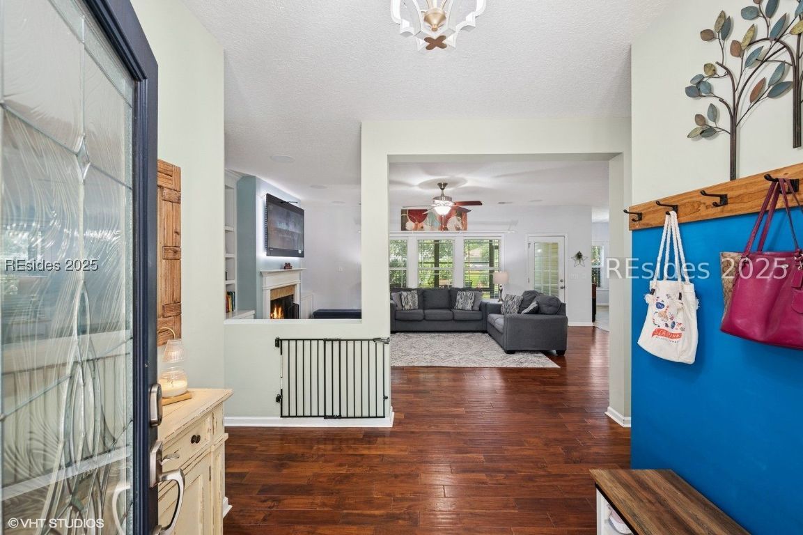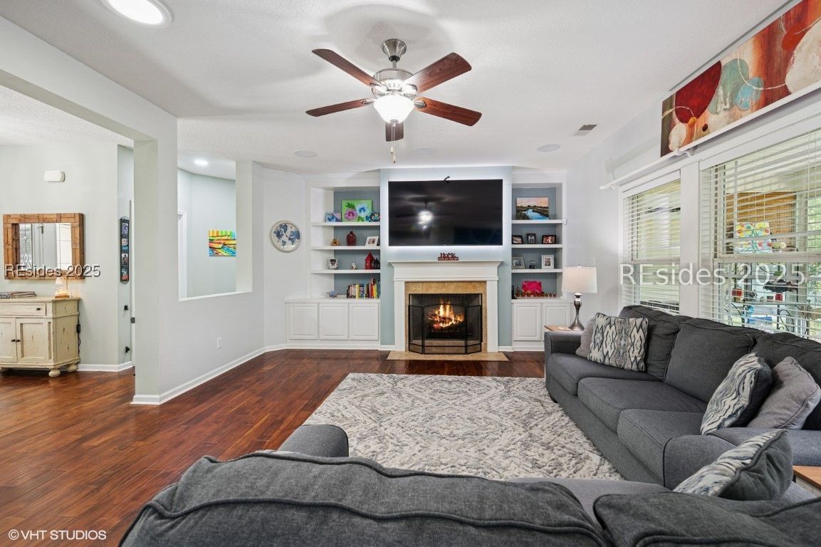 The wide open foyer invites you into this well-maintained 3 bedroom, 2 bath home, but what makes it extra special is what's just out the back door: a climate-controlled, 22x11 ft porch overlooking the backyard and lagoon. It's the perfect spot to relax, unwind, and enjoy the outdoors in comfort, no matter the season. With nearly 2,000 square feet on the main level and additional square footage in the bonus room. Spacious living space with a gas fireplace, an updated kitchen with quartz countertops and stainless steel appliances, dining area and smart bedroom separation for added privacy. Beyond the main living area, there is also an upstairs bonus room, offering endless possibilities for a home office, media room, or play area. With a new roof in 2023 and pride of ownership throughout, this home is move-in ready. Located in Alston Park with its own fitness room and community pool, it is also close to May River HS, shops, dining, and Red Barn recreation.
