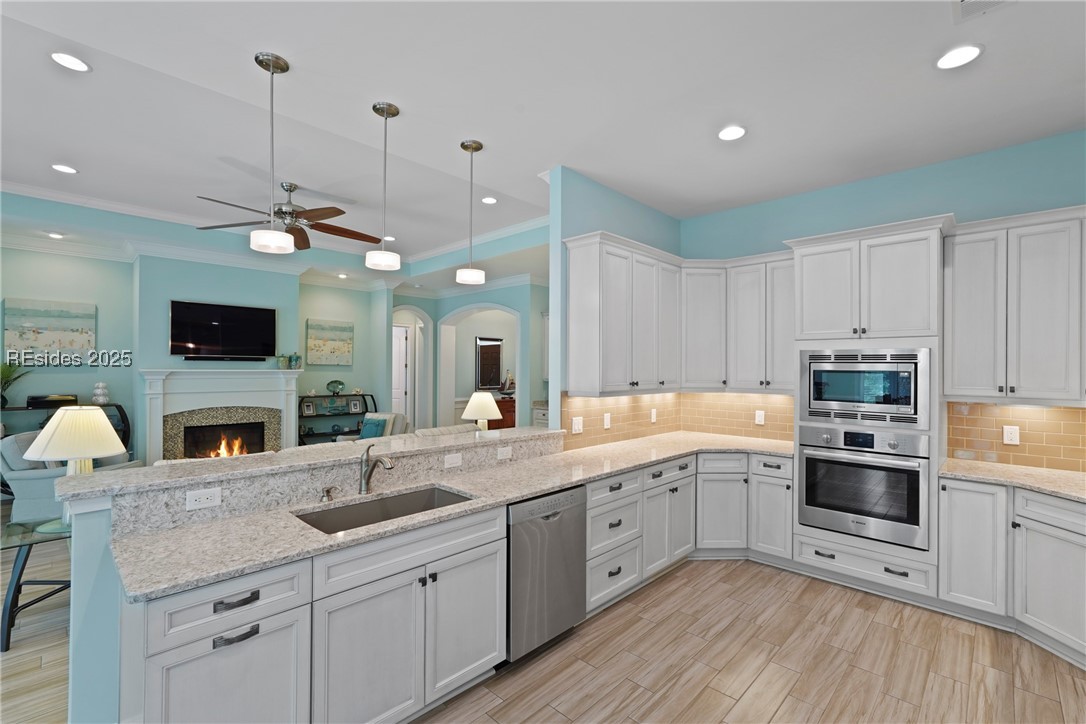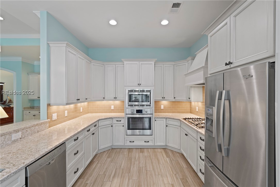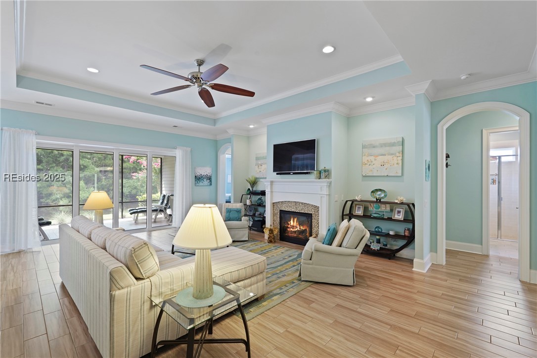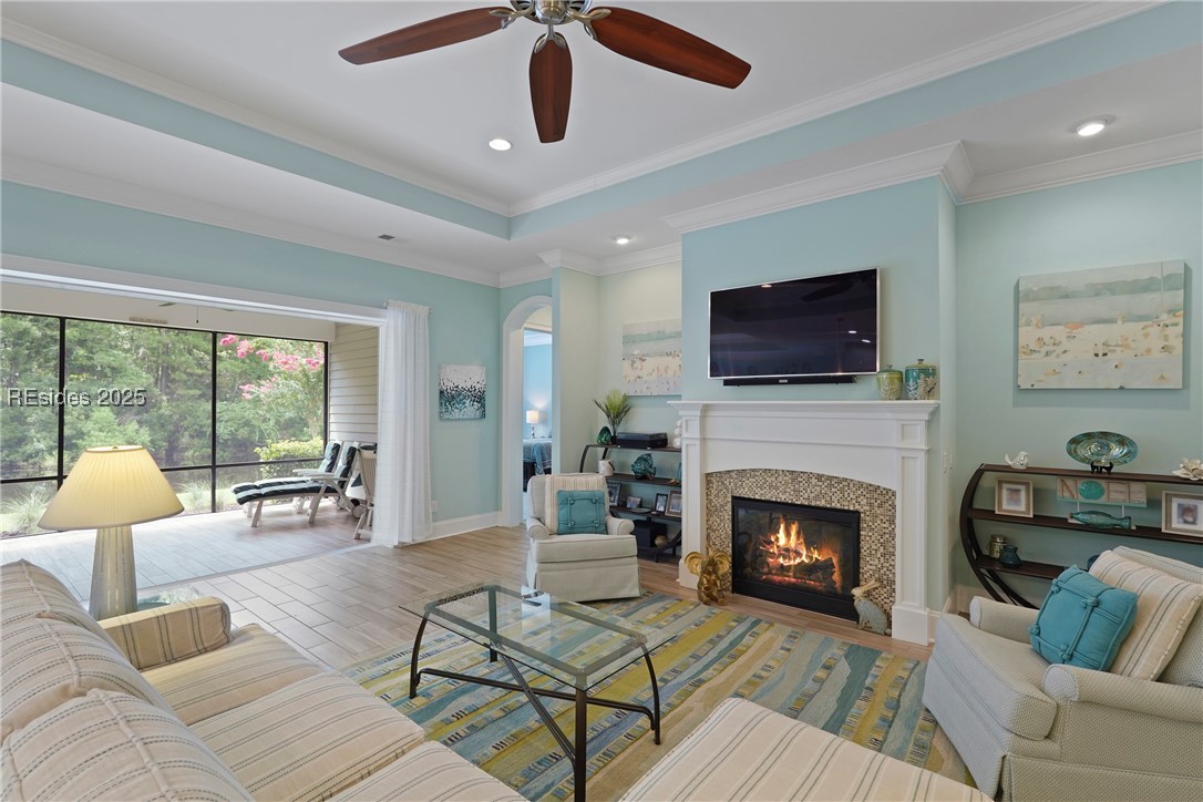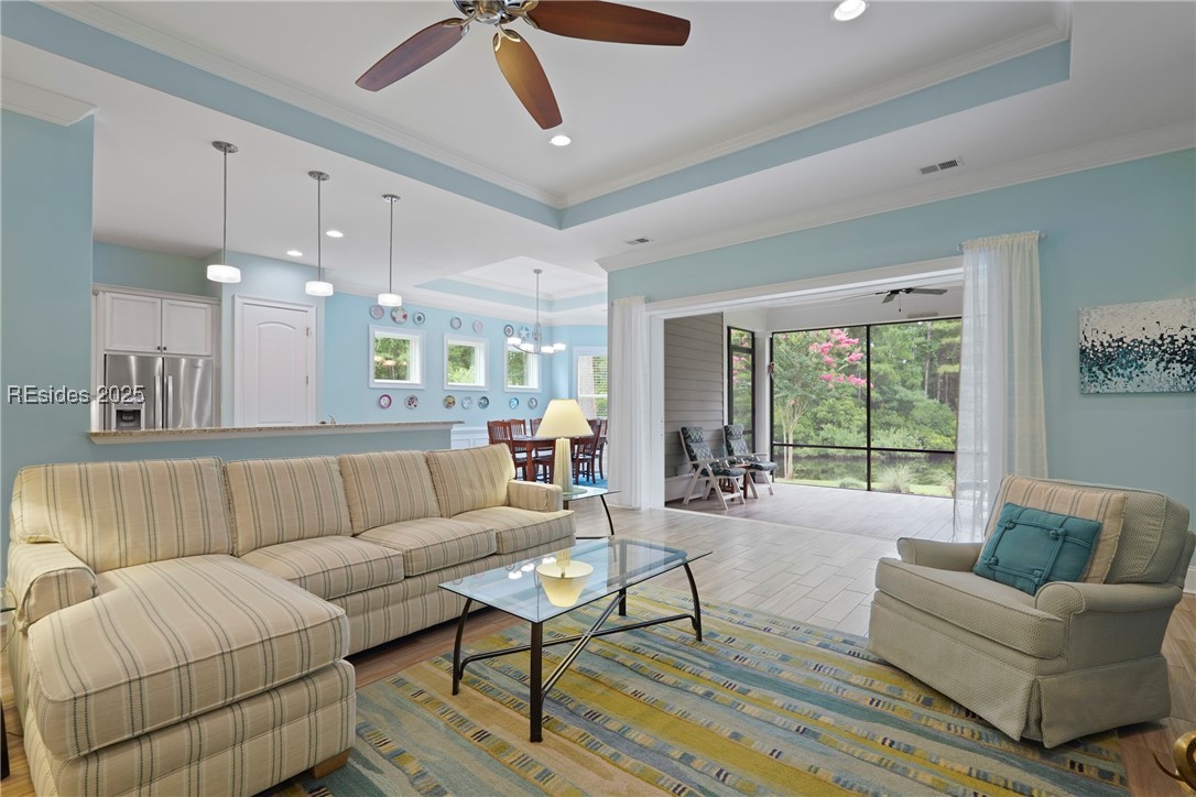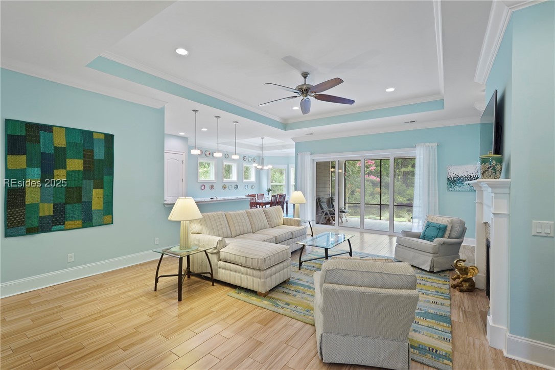 Immaculate custom-built Lowcountry home located in the desirable gated community of Hampton Hall in the heart of Bluffton, SC. This beautifully designed 3-bedroom, 3-bath residence offers a light-filled open floor plan that blends style, function, and ease of living. Gorgeous porcelain wood-like floors throughout the main living areas provide the beauty of hardwood with the durability of tileperfect for low-maintenance living. The spacious great room centers around a gas fireplace and flows seamlessly into the kitchen and dining areas. Culinary enthusiasts will love the gourmet kitchen, complete with Bosch stainless steel appliances, a gas range, sleek cabinetry, and beautiful finishes that complement the soft aqua-hued walls. Extend your living space outdoors with multi-slide patio doors that open to a large screened porch overlooking tranquil, private water viewsan ideal setting to relax or dine alfresco. The thoughtful floor plan includes a separate office/flex room perfect for remote work, hobbies, or guest overflow. The expansive laundry room and hallway built-in desk provide additional storage and workspace, while the epoxy-coated garage floors add a polished, easy-care finish. Every detail in this home was chosen with comfort and quality in mind. 2022 Roof, Whole House Water Filtration, energy saving Sprayfoam insulation, and epoxy floors are added bonuses. Experience Lowcountry living at its finest in Hampton Hall, just minutes to shops, dining, and downtown Bluffton. Hampton Hall allows golf carts and has low yearly fees offering pickleball, tennis, resort like pool, indoor pool, fitness center, clubhouse and a top notch golf course.