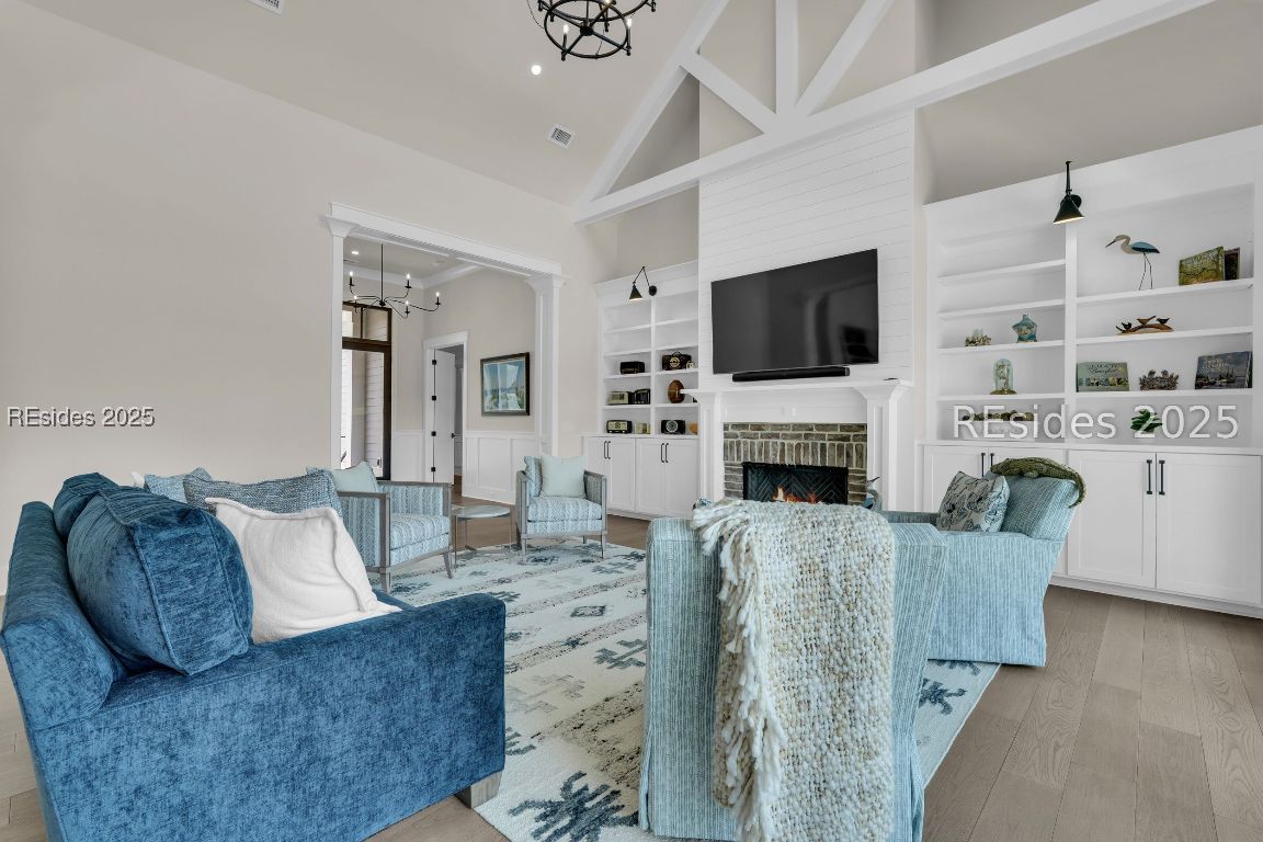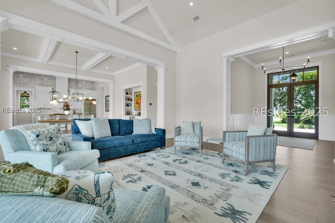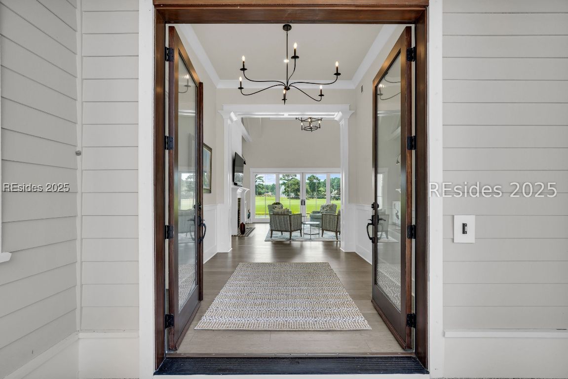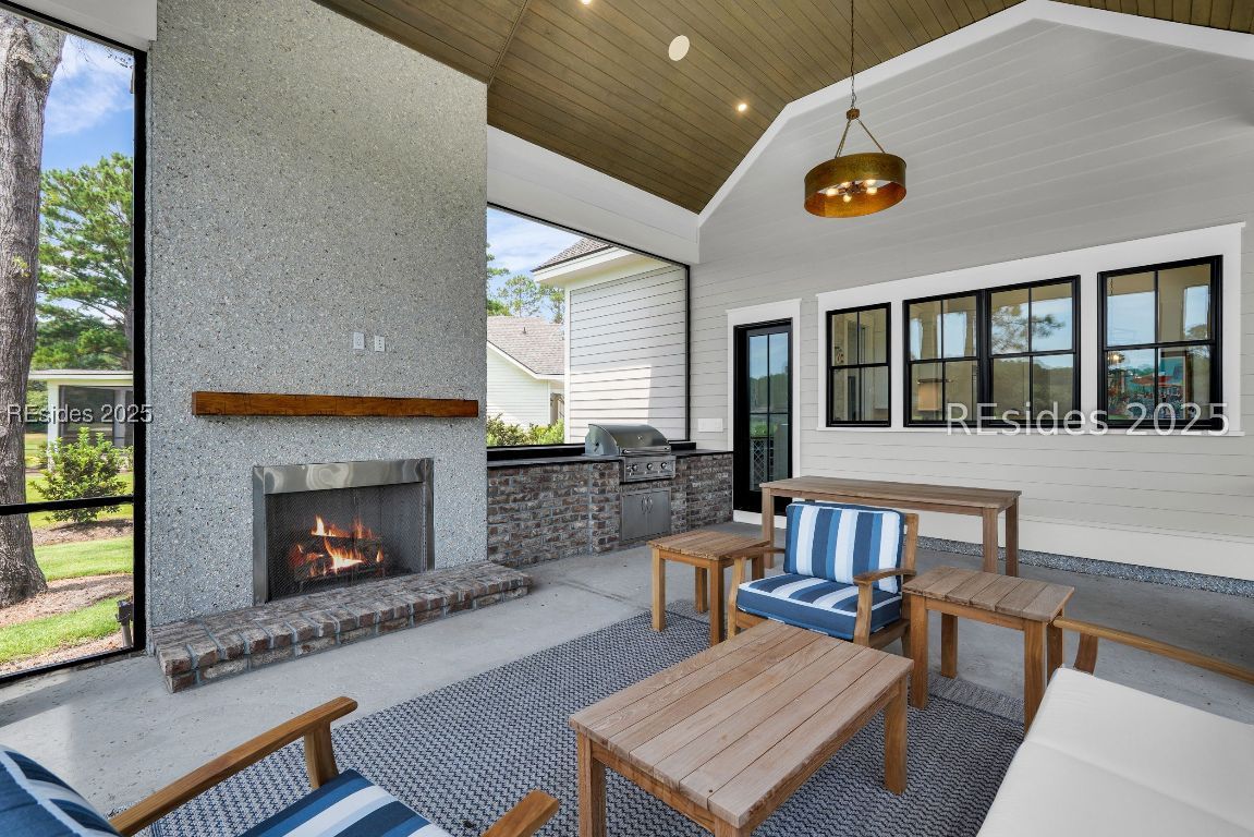 Imbued with exquisite craftsmanship and architecture that embraces its dazzling golf views, 13 Arcadia Place offers 3,900 square feet of incredible luxury and indelible Lowcountry grace. A custom built four-bedroom, four-and-a-half bath home completed in September of 2024, it still carries its original builder warranty through October of 2025. The experienced attention that was given to every detail is immediately evident even before entering, with soaring rooflines and sweeping landscaping surrounding a paver driveway, guiding the eye into grand open living spaces marked by elegant custom woodwork and soaring ceilings.The great rooms majestic peak serves as the perfect example of this refined airiness, with a cathedral ceiling cascading down to white oak floors past crisp trim work and custom built-ins surrounding the Savannah brick fireplace. Through a wall of Pella windows, the sight of the fourth fairway at Berkeley Halls South Course stretches across the horizon. Enjoy these views from the expanse of the open dining room, or soak in them from the outdoor living space. Designed to bask in the views and offer year-round enjoyment, and wired for high-fidelity sound through surround speakers, this golf fronted space encompasses both a screened-in porch with gas fireplace as well as a stunning sun-dappled pool deck with heated saltwater pool and spa. Embracing livability and effortless entertaining, the chefs kitchen carries this same sense of elevated style with custom range hood and sprawling center island, adding incredible functionality for entertaining through Blue Star appliance and butlers pantry.A pair of bedrooms off of the main living spaces both refined finishes, tall ceilings, custom molding and private en suite baths. Off of garage, which offers room for two cars and a golf cart on epoxy floors, an owners entrance gives way to spacious laundry boasting custom cabinets. The added bonus of a third bedroom and full bathroom above the garage, also includes a great bonus/flex room. An expansive walk-in attic provides ample storage. The primary suite embodies the homes luxury and grace with golf views, dual walk-in closets, expansive en suite bath with dual basins and walk-in shower. Down at one end of this palatial suite, a private space makes for an ideal office. Set among the natural beauty of Berkeley Hall and crafted to a higher standard of luxury living, this exquisite home exemplifies the timeless allure of Lowcountry living.
