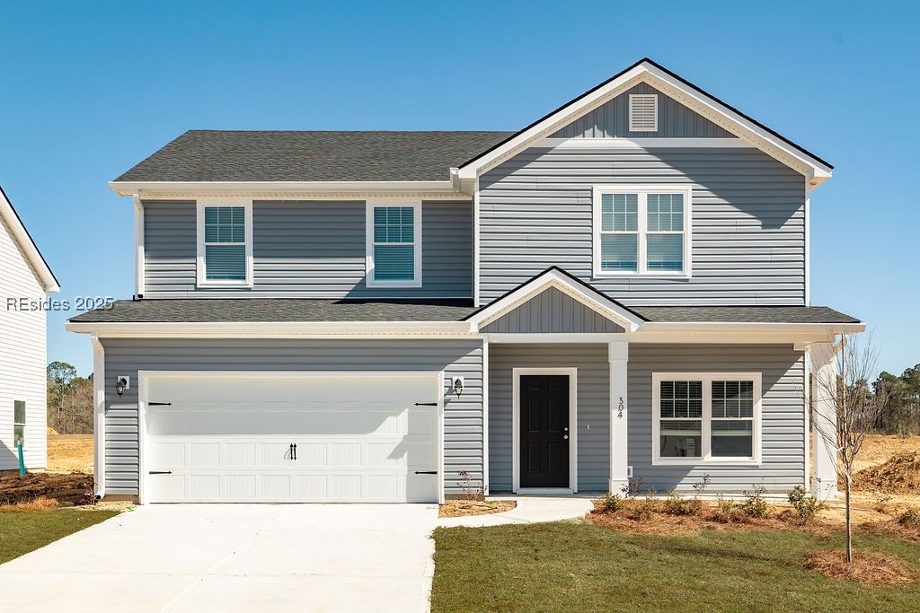 The Birch plan is under construction in Heritage at New Riverside with an estimated completion date of September 2025. Located on lot 8036, this 2,434 sqft plan features an office/flex space, open kitchen and living room, and secondary bedroom with full bathroom on the first floor. Upstairs is a loft area, spacious primary suite, and three additional bedrooms that share a full bathroom. Included are granite/quartz countertops, stainless steel appliances (dishwasher, microwave, oven), and a covered back porch. Stock photos shown; to be similar but not identical. $30,000 Flex cash incentive. See the on-site agent for details.