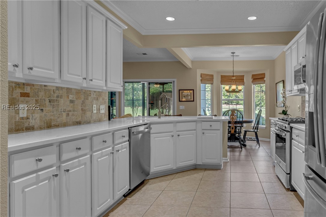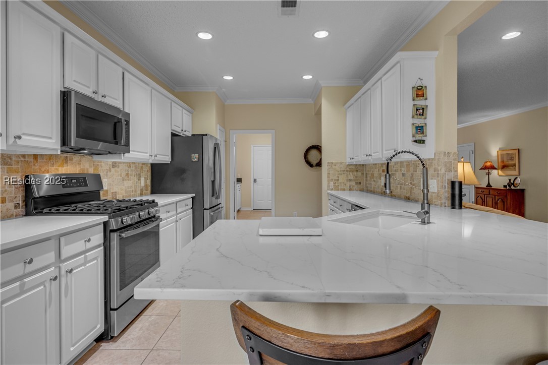 Step into this beautifully updated home in the heart of the desirable active 55+ Sun City community. Become captivated by the bright, open layout of this 2bd/2ba + spacious Den w/French Doors. The kitchen shines w/Quartz countertops, white cabinetry, stainless steel appliances, Gas stove, & Bay Window. The renovated primary bath offers a spa-like retreat w/a walk-in tiled shower, dual sinks & stylish finishes. Extended garage w/new opener, & pull down stairs w/fully floored attic for xtra storage. The show stopper is the 16x16 Screened in Sun Room w/Vinyl Windows & brick patio looking out to a private yard. This Heron Model is Move In Ready!