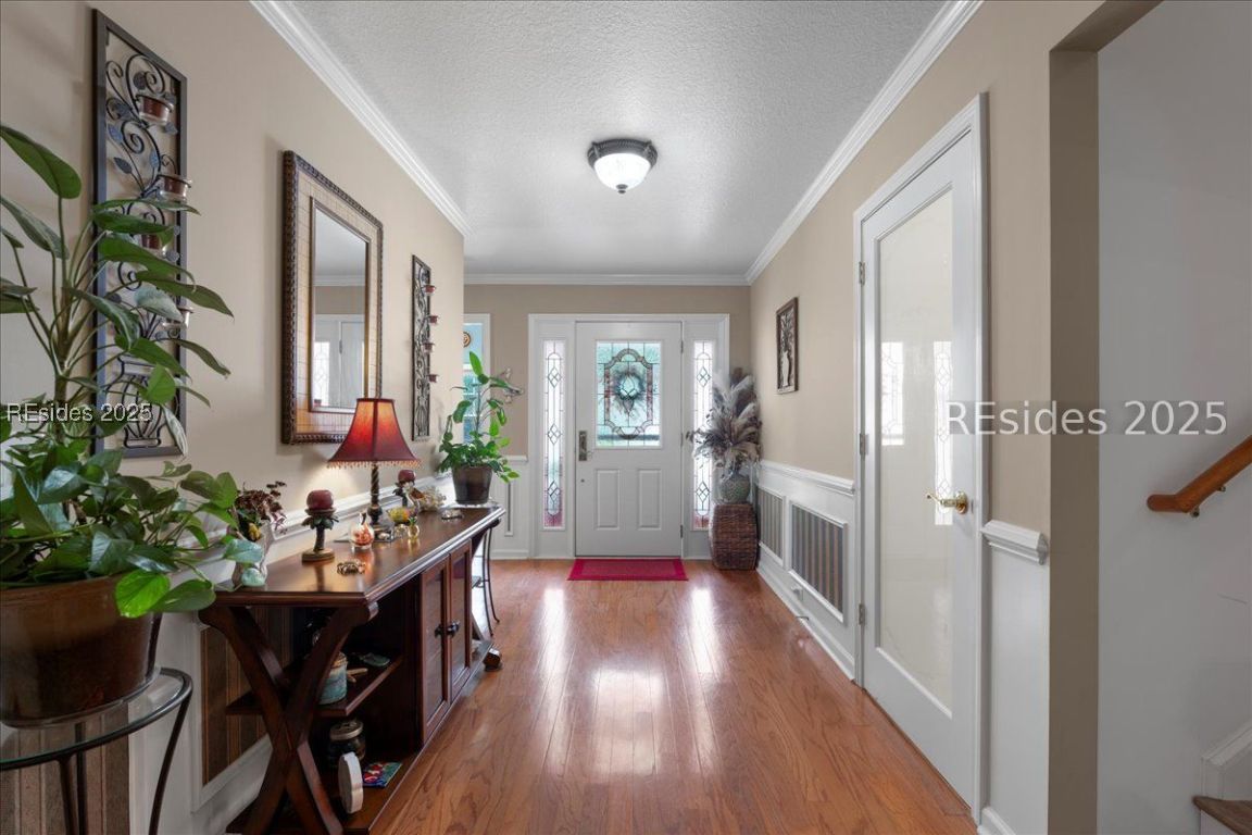 Charming and meticulously maintained, this 3 bedroom, 2 bath home with bonus room above the garage (flexible 4th bedroom/playroom/office) is tucked away on a quiet cul-de-sac in The Farm at Buckwalter Community. The original homeowner has cared for this property with pride, offering buyers a move-in ready home in one of Bluffton's most convenient locations. Inside, the home features hardwood flooring in the living room and primary bedroom, a cozy wood-burning fireplace with elegant surround, and a renovated primary bathroom with a walk-in shower and soaking tub. The kitchen boasts tall cabinets, stainless steel appliances, and ample counter space, perfect for everyday living or entertaining. Enjoy year-round comfort in the enclosed heated and cooled porch, overlooking the private backyard with wooded views and patio. The bonus room above the garage adds flexibility as a 4th bedroom, playroom, or home office. This property offers both privacy and convenience, located minutes from schools, shopping, dining, and all that Bluffton has to offer. A true gem in The Farm community, this home combines thoughtful updates, timeless features, and an ideal setting