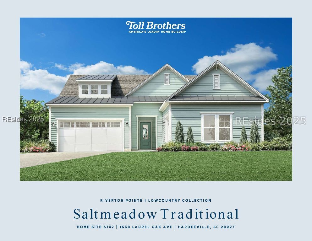 This beautiful 3-bedroom Saltmeadow floorplan boasts many extras including a fireplace, tray ceilings, expanded dining room/and covered patio, well as designer touches throughout. Riverton Pointe is a staff gated new-home community that offers an array of amenities including a Jack Nicklaus Design golf course, driving range, pro shop, restaurant, swimming pool, tennis, fitness center, future clubhouse, pickle ball, bocce ball, social events and much more! This home's projected completion month is January 2026, which is subject to change.