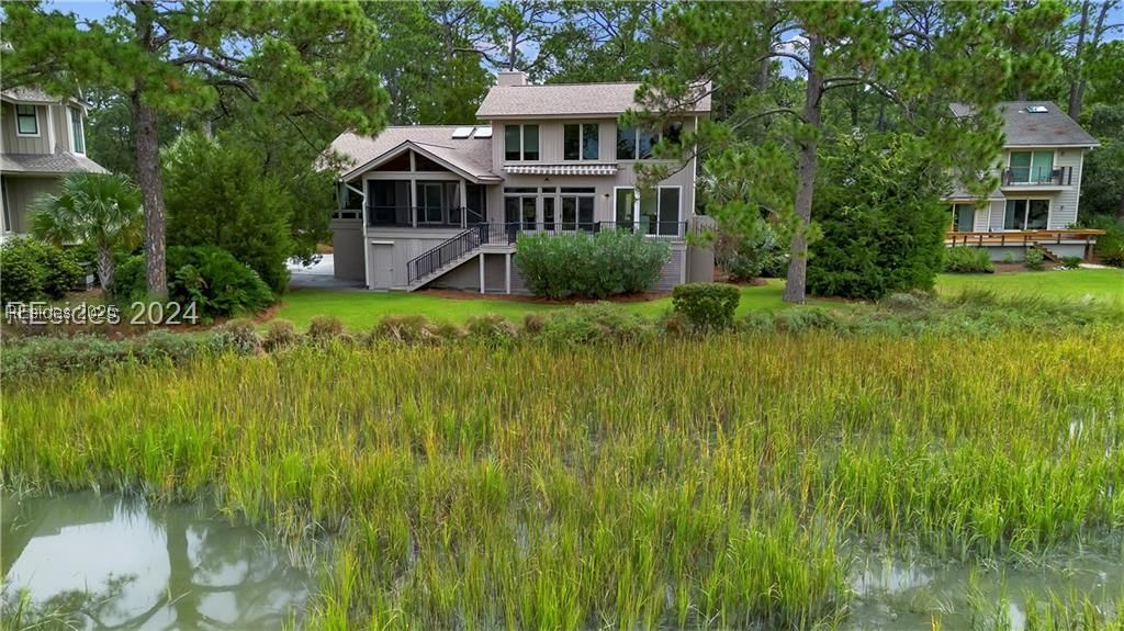 The discerning buyer will appreciate this quality home. You can walk or bike to the beach (.4 mile) in minutes. Kayak from your backyard to Calibogue sound & the Atlantic ocean. You will enjoy stunning tidal marsh & sunset views from almost every room. This Home was renovated extensively over the years with approx. 1200 sq. feet added. The finishes of this home are quality construction with crown molding, wainscoting, hardwood floors & stone floors & granite countertops. Flow seamlessly through the open floor plan as living is easy in this home. Gatherings and entertaining will be fun and memorable. Many meals to be enjoyed with family and friends. You will feel like a professional chef cooking in this kitchen with stainless appliances, two dishwashers, propane gas stove, many cabinets and drawers for all your cooking and dining needs. This cooks kitchen also has a butlers pantry for easy prep and clean up. Prep for a gourmet meal on your center island with butcher block top. The center island also has a wine cooler & refrigerator drawers. The second living area can be your TV room or game room or another bedroom. Two downstairs bedrooms share a jack & jill bath of Tuscan walnut stone. The upstairs is solely for the master suite. It was designed for the lifestyle of those who want privacy and luxury. Especially when family or friends are staying, it becomes the perfect sanctuary to go to and relax. And, the view from your bedroom is stunning. You each have your own master bathroom and huge walk in closets and only share the shower. You also have an office/library off the master. And, the Laundry room is up there where all your laundry is. Want 4 bedrooms? Plenty of room to add a 4th bedroom & bath in the walk in attic or use the second living area below. You will find yourself spending time on your Large rear deck or in the screened porch enjoying views, wildlife and ocean breezes. A very Rare 3rd car garage for that classic car. Plenty of room for those garden tools, workout equipment or just plain ole storage. Fabulous opportunity to own an updated home in one of the best neighborhoods in Sea Pines for under $2.5 million! Owner SCREA.