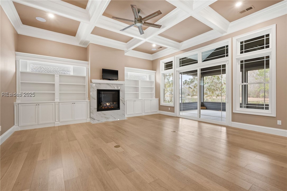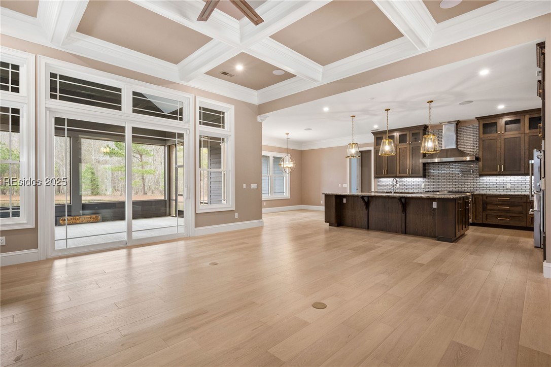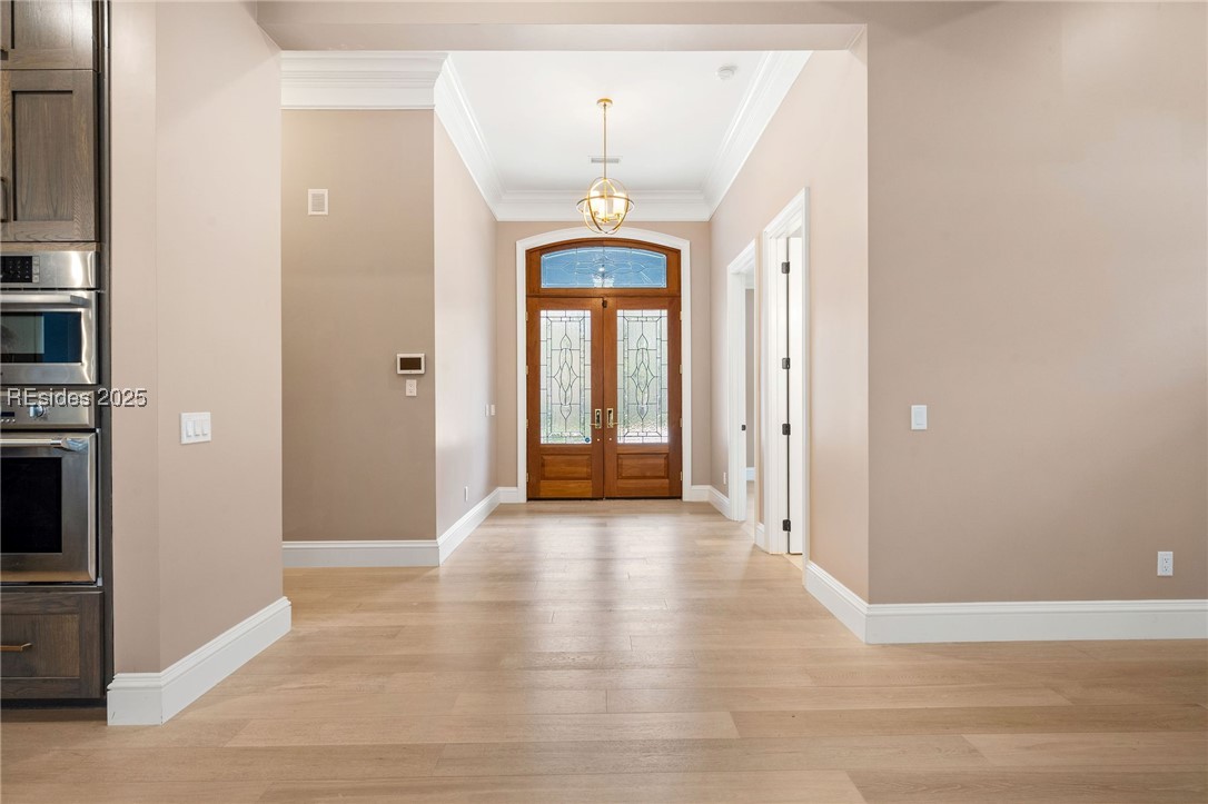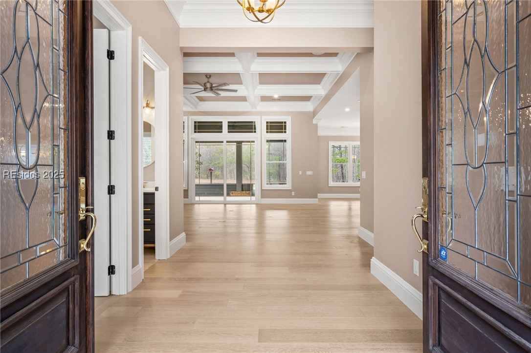 BETTER THAN NEW! Built in 2020 and now upgraded with custom, high-design finishes. Seamlessly, flowing, open-concept design features 10 ft. coffered ceiling, 5-piece crown trim, white oak wood floors, 8 ft. doors, and built-ins flanking gas fireplace with heat efficiency blower. The chef's kitchen is equipped with Viking and Bosche appliances, pot filler, huge island for laid back entertaining and seating. Walk-in pantry w/ built-ins, big laundry w/sink, storage galore. Over-sized, covered screen porch, New FENCED IN back yard! 3 car AC garage. Beautifully set back on end of cul-de-sac street with nature filled long lagoon views.
