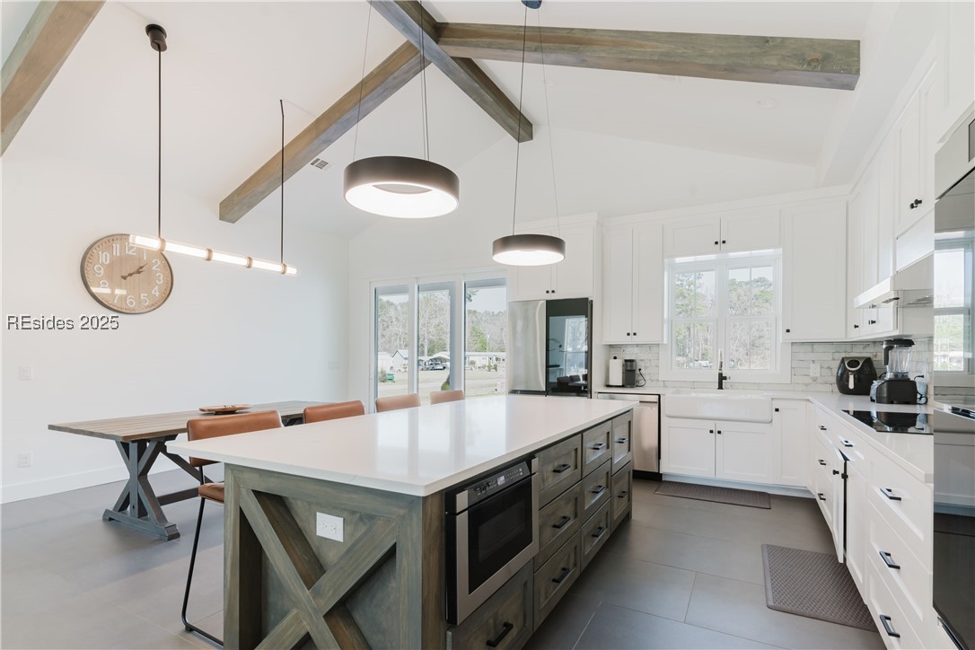 Magnificent home, nested on almost 5 acres, offers convenience, comfort, and much deserved tranquility. This spacious 3-bedroom, 2.5 bath home (with an option for a 4th bedroom) built in late 2024, is well designed for Lowcountry living. It features an open floor plan with vaulted ceilings, gourmet kitchen, designer tile flooring throughout the main living areas and luxurious vinyl plank flooring in every bedroom. The home’s foam insulated walls (including the garage) ensure year-round comfort and energy efficiency. This exceptional property is designed for modern comfort and effortless entertainment. Don’t miss the chance to make it yours!