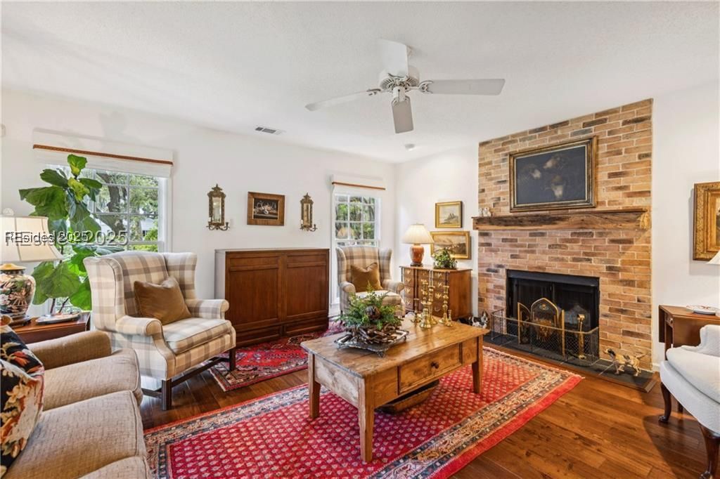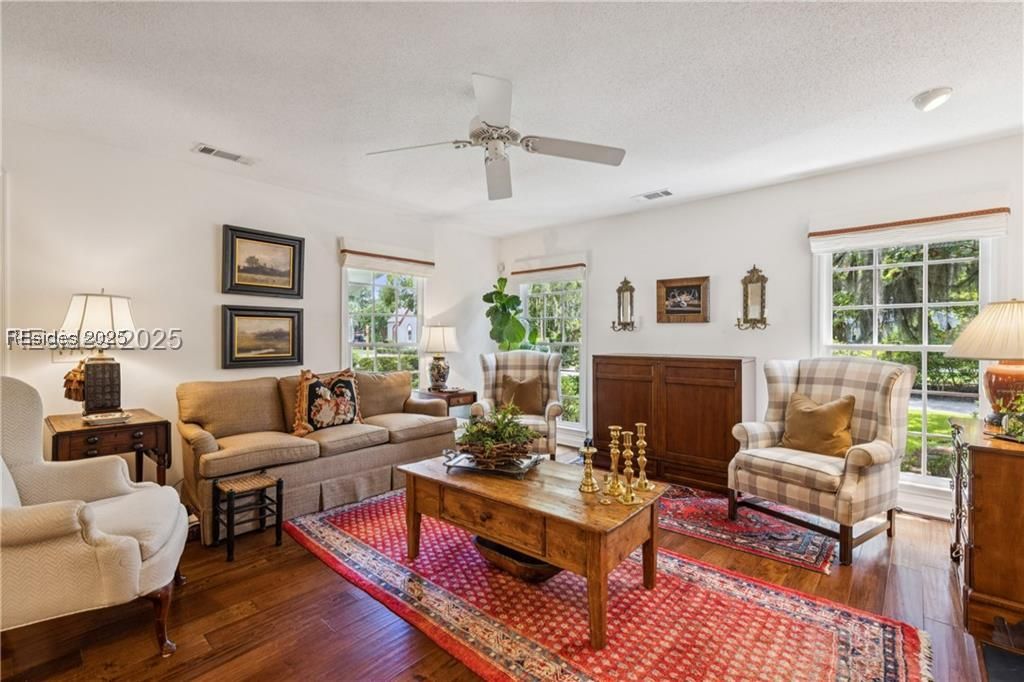 Situated along Huger Cove in the heart of historic Old Town Bluffton, this charming cottage home enjoys tidal water and nature views as well as exceptional convenience to all that Old Town Bluffton has to offer! Elevated home featuring 2 bedrooms, 2 bathrooms, great room, kitchen/family room, front porch, rear patio, and 2 car garage. Special finishes include 2 wood-burning fireplaces, wood flooring, floor-to-ceiling windows, spray foam insulation, paver driveway, and more. Absolutely charming!