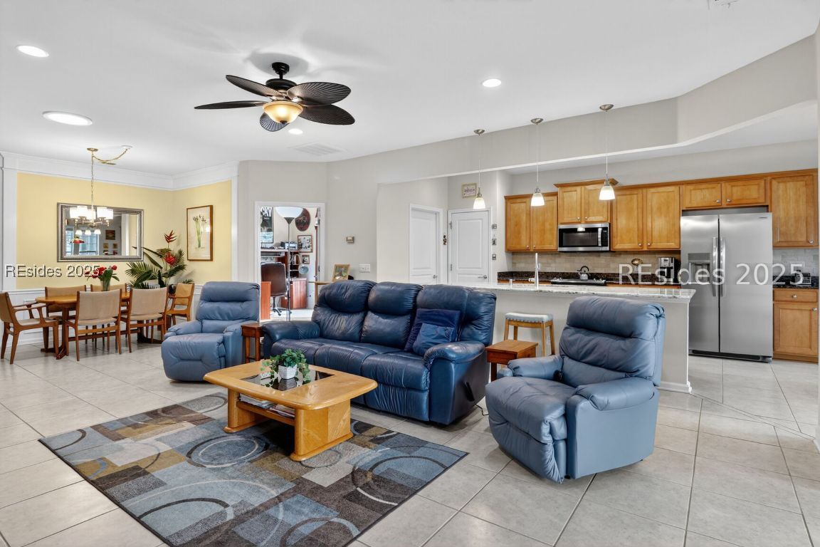 This beautifully cared-for Vernon Hill model in Sun City Hilton Head sits on a lovely cul-de-sac lot and offers exceptional value, peace of mind, and timeless upgrades throughout. This home stands out amongst other homes in Sun City because it offers NOT two, but THREE bedrooms PLUS an office and an inviting sunroom! Enjoy watching the wildlife on the lagoon from your spacious screen porch. This home is fabulous for entertaining with its open floor plan with an eat-in kitchen, large breakfast bar and additional dining area. There is ceramic tile in the entry, kitchen, family room, dining room, sunroom, and bathrooms. Hardwood floors in all other areas. Recessed lighting and ceiling fans throughout the home. Newer granite countertops in kitchen and both bathrooms. Updated Appliances (many under warranty). With major systems updated and high-quality finishes inside and out, this is a move-in ready opportunity not to be missed. The roof was replaced with Owens Corning Architectural Shingles (6/18/20) with transferable warranty. Full stucco replacement completed (12/15/21) with warranty. Anderson storm door installed in June 2017. Garage door opener (Chamberlain, 4/15/19) and new springs (5/5/25). Central vacuum system brand new unit installed January 2025. Energy-Efficient Comfort Systems: Trane HVAC system (installed March 2016): A/C: XV18 High-Efficiency 4.0 ton, Heat: XC80 High-Efficiency. Includes 10-year all parts warranty and 12-year compressor warranty. Marathon 80-gallon hot water heater (January 2015). Three solar tubes to enhance natural lighting. You don't want to miss this one! This home is a true gem! Just move in and start enjoying the fun and active Sun City Life Style!