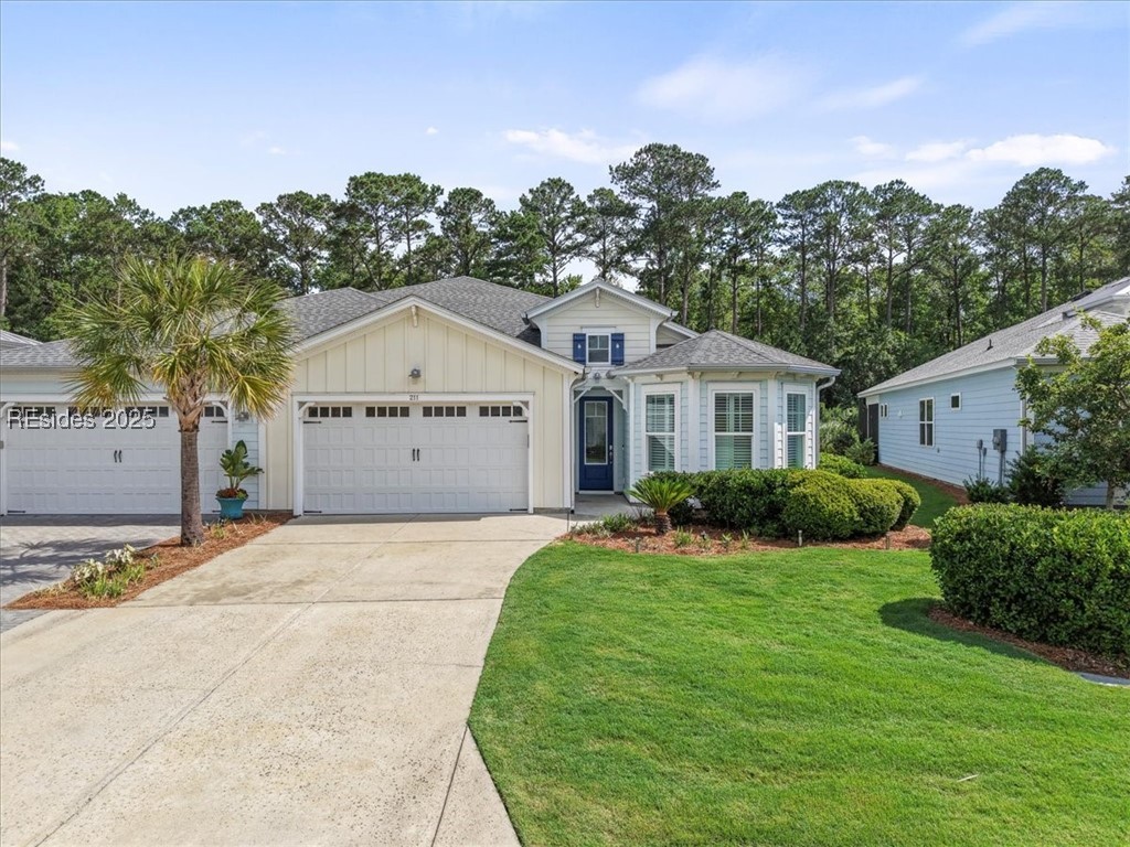 This popular Nevis Villa with a built-in POOL offers low-maintenance luxury living in a peaceful cul-de-sac. Move-in ready, it features 3 bedrooms plus a den/office, high-end finishes, neutral tones, trim accents, and luxury vinyl plank flooring. The chef-style kitchen includes quartz countertops, stainless steel appliances, and white cabinetry. Enjoy indoor-outdoor living with a screened lanai and pool. The two-car garage has epoxy flooring. Landscaping is included in the POA. Located in Latitude Margaritaville, a 55+ community with world-class amenities. Don't miss your slice of paradise!