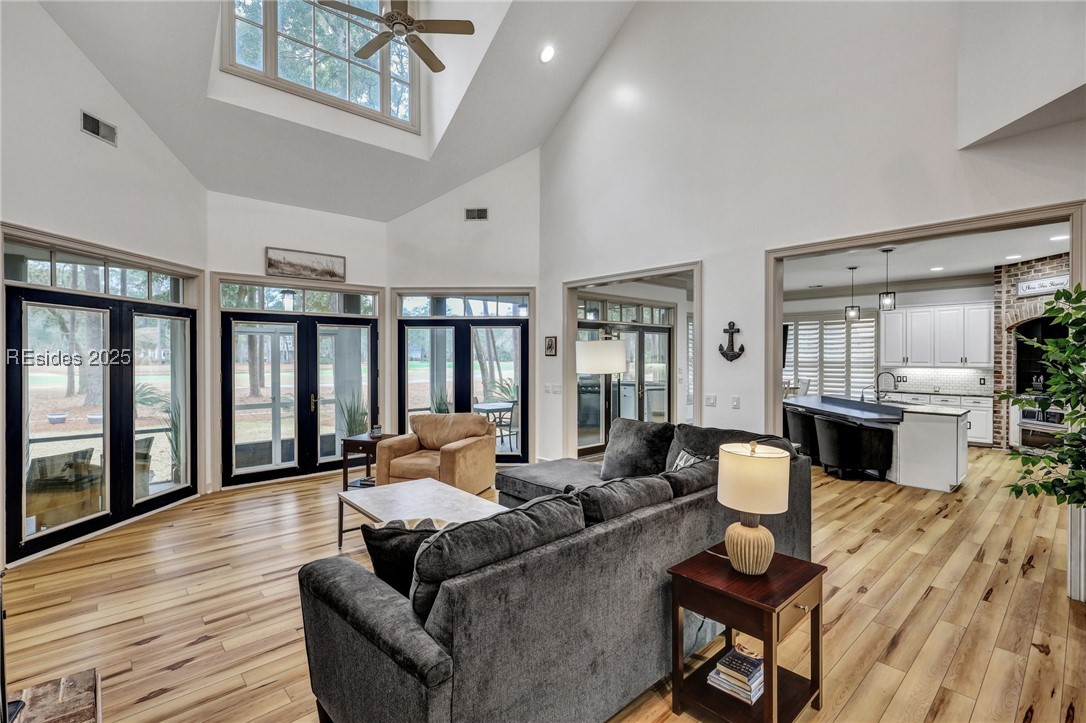 Stunning, Remodeled Lowcountry Open Floor Plan Home w/Big Lot on 7th Green Nick Golf Course. New Paint, New Floors, New Electrical, New Landscaping, New Built-in Brick Gas BBQ, New Lanterns, Dual Wood/Gas Fireplace, Refreshed Large Kitchen with White Cabinets, Refreshed Dining Room & Butler’s Bar, Refreshed Bathrooms, Refreshed Screened in Patio w/TV & BBQ, Great Room w/Built-in Bookcases, Plantation Shutters, Large Walk-in Closet, 1st Flr Master + 1 ½ baths, 2nd floor 4 bedrooms/3 baths, 2 Car + 1 Golf Cart Garage, Lazy Front Porch w/Views of Quiet Yard, Some Furniture & Golf Cart Avail for Purchase