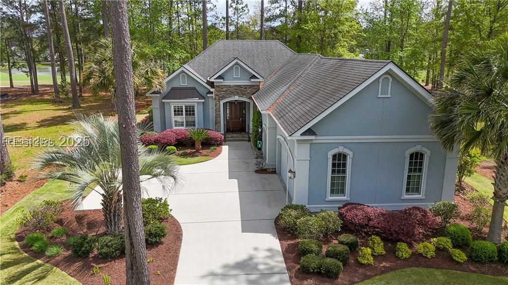 Stunning Architect-Designed (2"x6") Custom-built home w/Curb Appeal & open floorplan WOW factor! Premium lagoon, golf (5th Tee Nicklaus Design) & wooded views. Kitchen w/single-level island & newer Bosch Stainless Steel appliances. Tray ceilings-dining & Primary Bdrm. Custom closets, window treatments & shutters, 8" baseboards, & crown molding throughout. Office French pocket doors. Cascading recessed lanai sliders & blinds. Unique rollout front screen door. Whole house dehumidifier. Oversized 2.5-car garage. Lightly used, Pet-free, smoke-free, well-cared for home. Adjacent Lot--313 Firethorn Lane--Active-Pending. Preserved wooded Lot across.