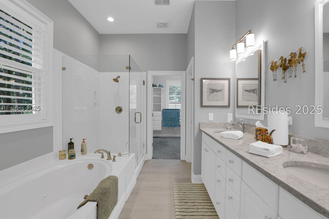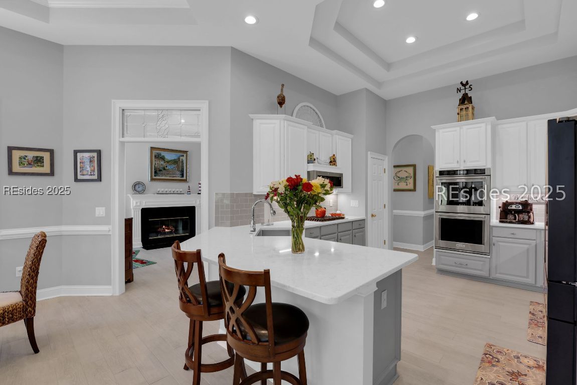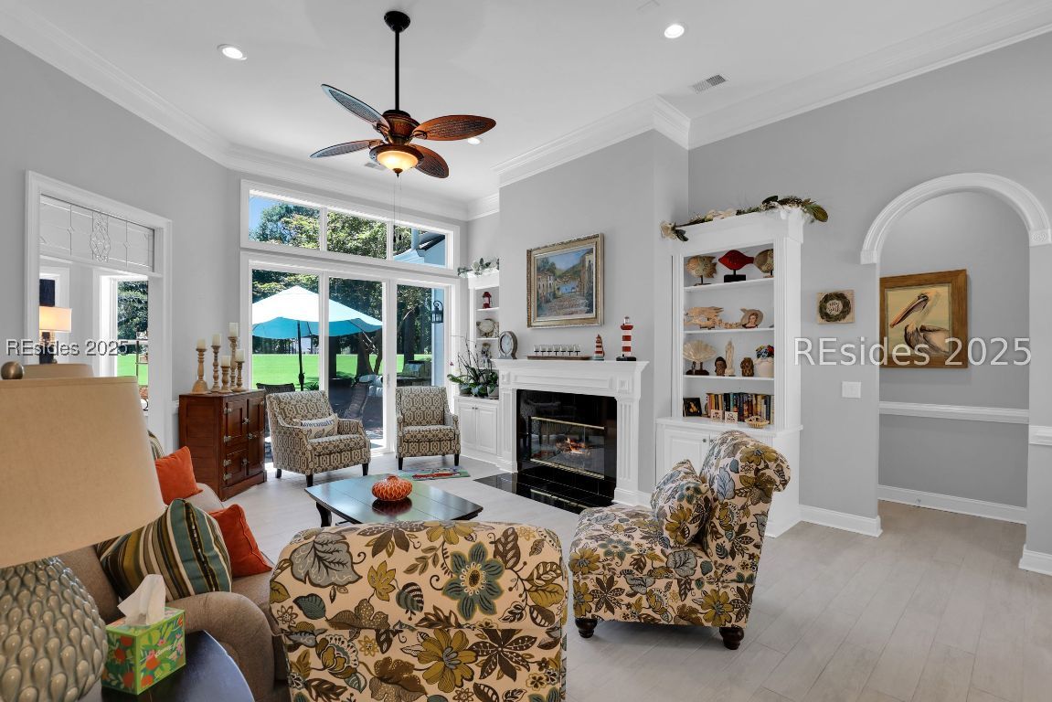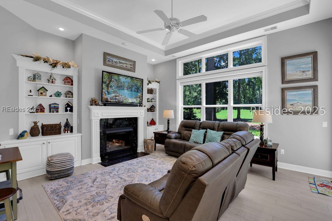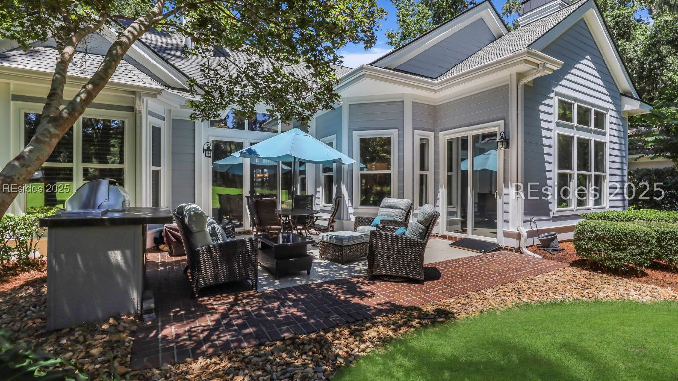Welcome to 3 Manchester Ct, a beautifully renovated 4BD/4BA move-in ready home in the prestigious golf community of Belfair! Perfectly positioned on the 10th tee of the East Course, this home is packed with high-end upgrades and thoughtful improvements throughout. Inside, enjoy 12' ceilings, abundant natural light, and cozy fireplaces in both the living and family rooms. Recent updates include a new roof, HVAC, luxury kitchen appliances, plantation shutters, walk-in showers, custom vanities, new tile and carpet, epoxy garage and patio flooring, and so much more. The kitchen features freshly painted cabinetry, a large room-sized walk-in primary closet, and flows into an open-concept family and dining area. Relax or entertain on the expansive patio with a built-in Lynx grill and panoramic golf course views. Professionally landscaped with updated lighting and irrigation, plus a 2-car garage, golf cart bay, and GOLF CART INCLUDED! This is Lowcountry living at its finest.