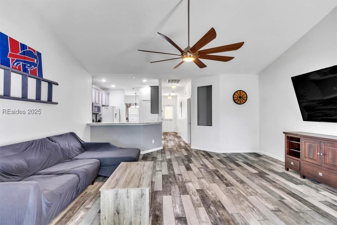 This inviting 4-bedroom, 2-bathroom home features a spacious layout with a fenced-in backyard and a screened-in patio—great for relaxing or entertaining. The kitchen, bathrooms, and flooring were all updated in 2020, giving the home a fresh, modern feel. Located in the fast-growing New Riverside area, the neighborhood offers miles of wooded walking and biking trails, a community pool, fitness center, and a brand-new park. You’re also golf cart, biking or walking distance to New Riverside Village, which has shops, restaurants, salons, a butcher shop, a brewery, and more. Don’t miss out on the chance to be part of this exciting community!