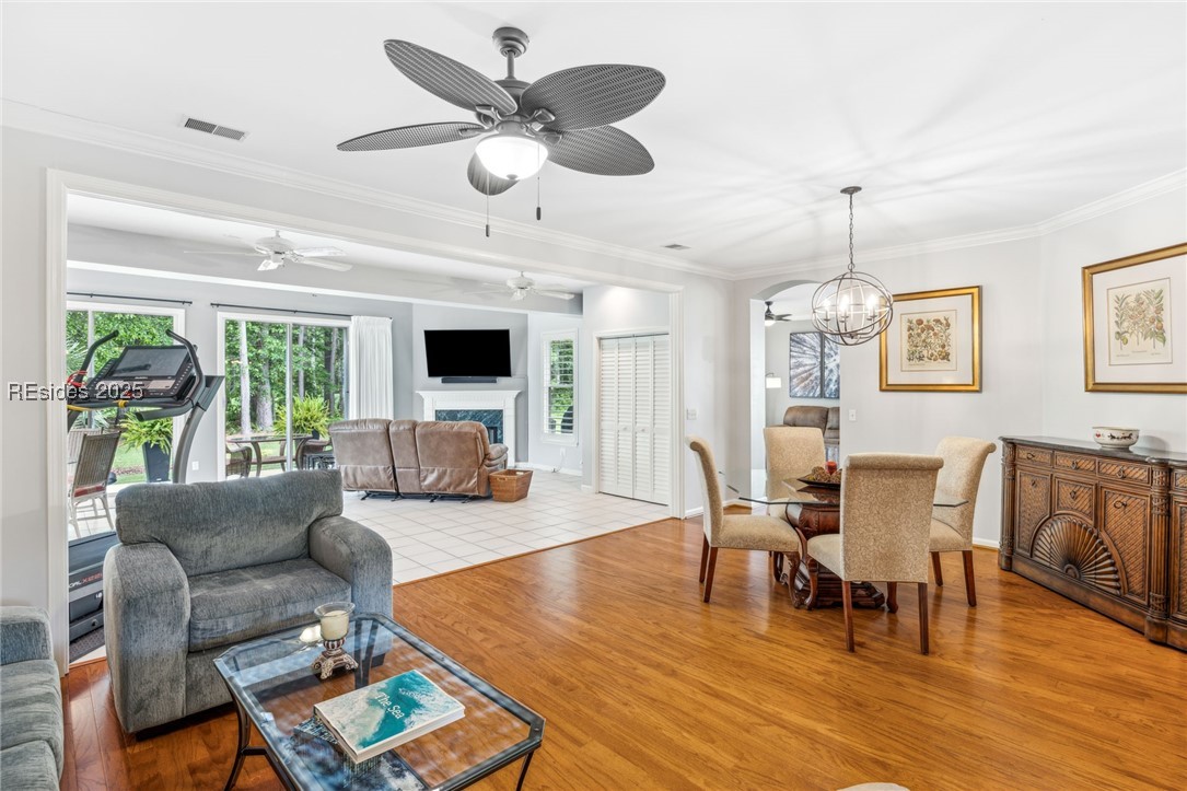 Imagine sipping your morning coffee while overlooking the 13th hole of the Okatie Golf Course—this spacious Charlotte-Madison model offers just that. The great room and dining area feature newer wood flooring and open into a bright Carolina room with a gas fireplace. The updated kitchen shines with stone countertops and opens to a cozy family room—perfect for everyday living or entertaining. The expansive primary suite includes a bay window framing peaceful backyard views, along with a walk-in closet and a cultured marble soaking tub, separate shower, and dual vanities. Oversized garage with a durable epoxy-coat. Located on quiet cul-de-sac.