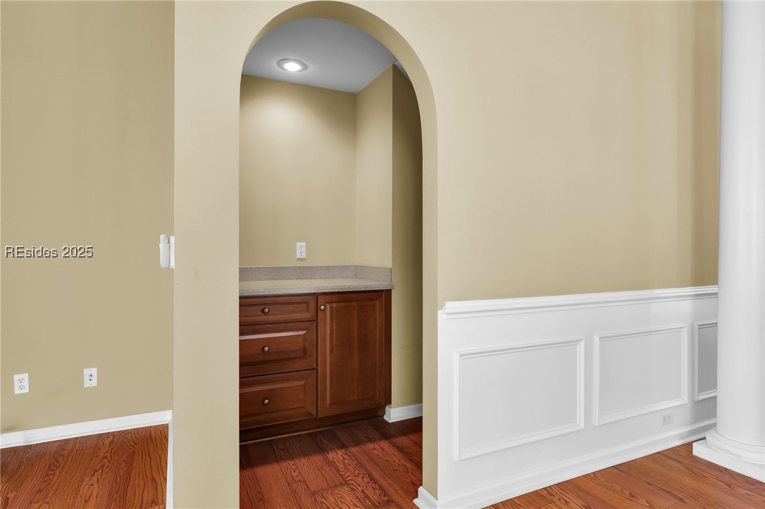 Tee off into the good life at 30 St. Simons Drive! Perfectly tucked on a quiet cul-de-sac in Island West, this 4-bedroom, 3.5-bath home with bonus room and office boasts sweeping golf course views and one of the community's rare epoxy-coated 3-car garages. Inside, gleaming hardwood floors, soaring 11' ceilings, and a gas fireplace set the stage for light-filled, open living. The chef's kitchen with stainless appliances, breakfast nook, and effortless flow to the great room is perfect for hosting after a round on the greens. Upstairs, the expansive bonus room features a wet bar and wall of cabinetry, ready for movie nights or game-day gatherings. Enjoy being a golf cart ride away from resort-style amenities including golf, pool, tennis, fitness center, clubhouse, & more. Live where you play!