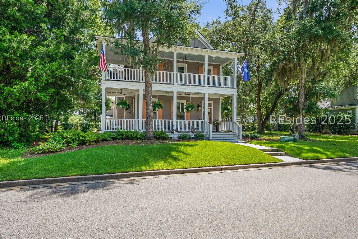 Immaculate Lowcountry home w/ classic double porches, located in the sought after community of Celadon. Built in 2022, this thoughtfully designed home offers a first-floor primary suite & three additional bedrooms upstairs. The open-concept layout features high-end finishes throughout, including quartz countertops, custom cabinetry, spacious kitchen island, GE café appliances, luxury vinyl plank flooring, & 10' ceilings with crown molding. The primary suite includes an expansive walk-in closet and elegant bath w/ dual vanities & custom zero-entry tiled shower. The private screened-in porch w/ gas fireplace provides a perfect space for year-round outdoor living. With a low-maintenance landscaped yard & detached two-car garage, this home is a must see!
