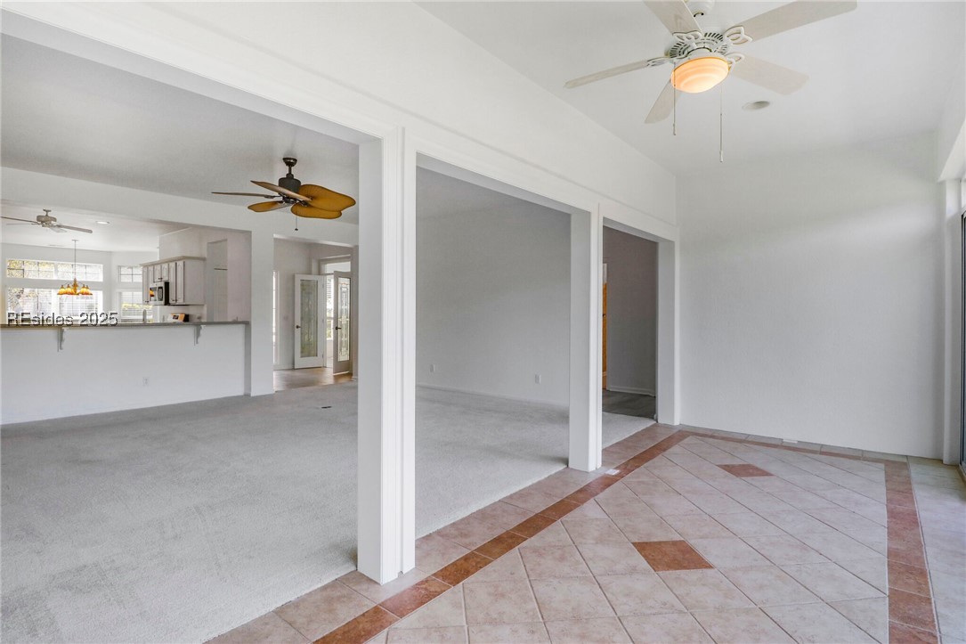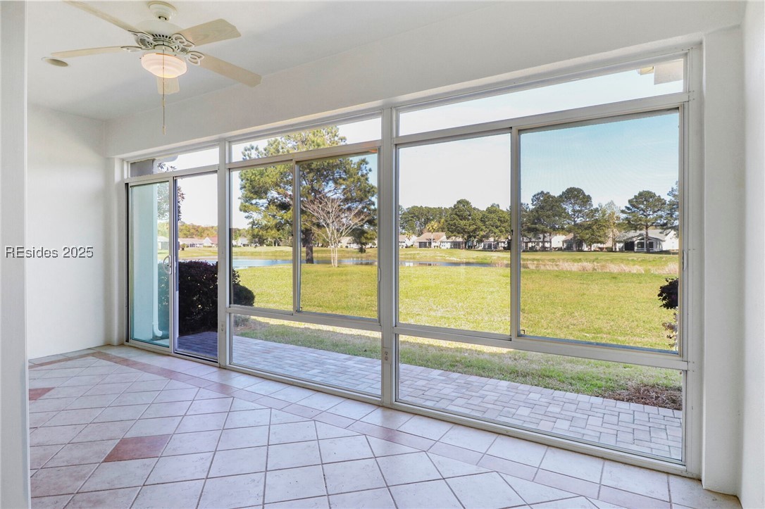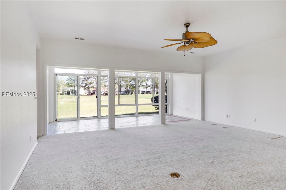 2025 Remodeled Starling Villa! Unparalleled views of the golf course & lagoon. 3 spacious bedrms & 2 bathrms, features a cozy den & a Carolina room with elegant, tile flooring & a charming brick paver patio. Eat-in kitchen is a culinary dream, complete with Corian countertops, SS appliances, white cabinets, & a central island. Upgraded new LVP floors add a touch of sophistication. Owner's suite is a private retreat with a bay window, LVP floors, dual vanities, & a tub & shower. HVAC system installed in 2021. Ceiling fans & freshly painted interior and garage. New LVP fooring in the 3 bedrooms, den, halls, MB closet & laundry room. New Paint