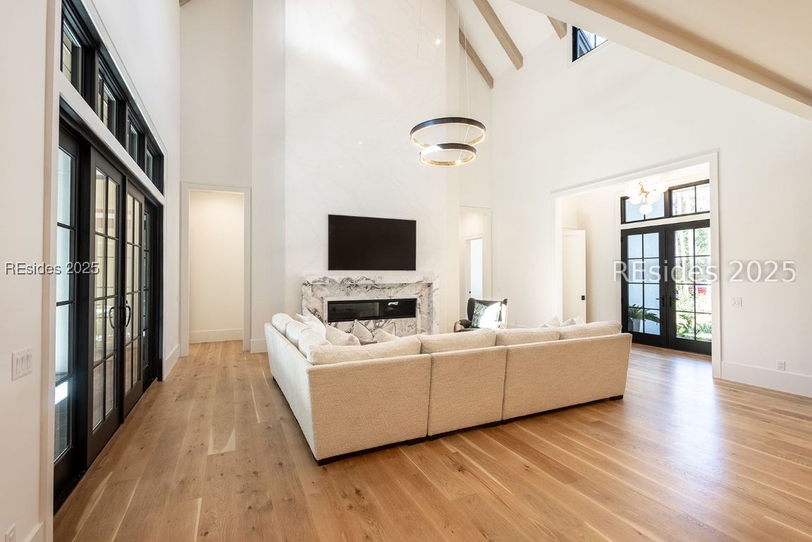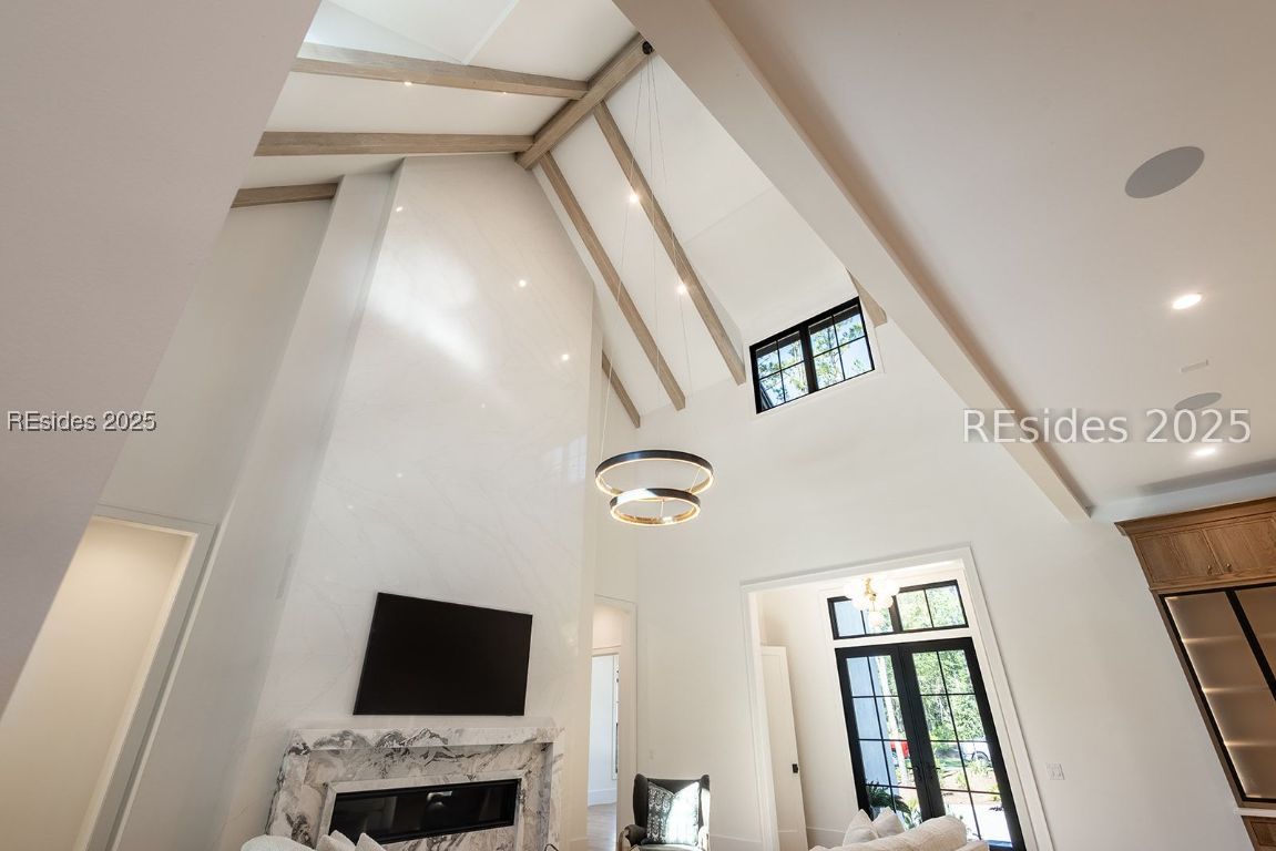 Welcome to this exquisite 5,457-square-foot luxury home, a masterpiece of design and elegance with 6 bedrooms, 6 full bathrooms, and 2 half bathrooms. The property features a stunning pool with an automatic cover, a spa with a waterfall, and a cabana equipped with a kitchen and half bath for entertaining. Inside, enjoy a vaulted living room with a 32-foot quartz fireplace, solid oak floors, and custom cabinetry. The gourmet kitchen has Mele appliances, a wine tower, and a scullery. Additional amenities include an elevator, a carriage house, an Isokern fireplace, and a 25 KW generator, blending comfort and luxury.