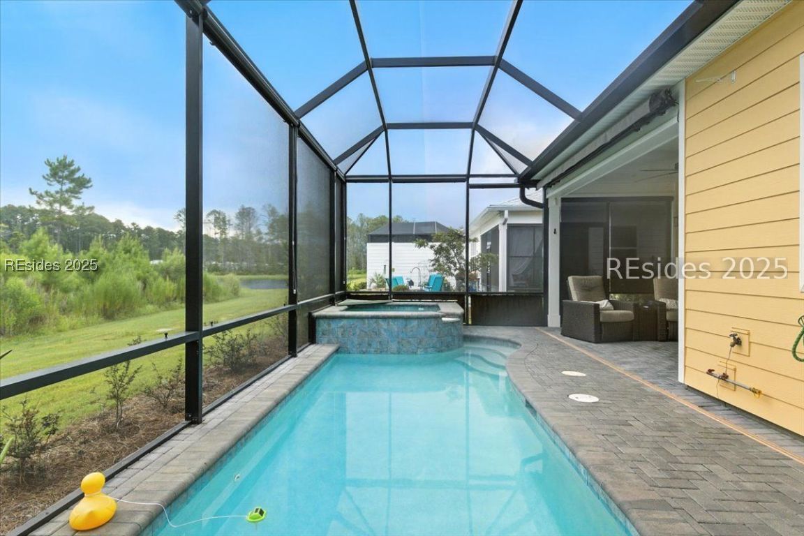 Dreaming of living every day like you're on vacation? Welcome to your Barbuda model, where the Lowcountry breeze, the rustle of palmettos, and the scent of salt air greet you every morning, and where sunsets over the wetlands become your daily tradition. Let's start with your personal paradise: Tucked behind this home is your refreshing plunge pool and spa, perfect for invigorating morning Aerobics or a relaxing soak under the stars after a day of pickleball and live music at the Town Center. The extended lanai with a birdcage enclosure offers all the outdoor living you could want while staying comfortably shaded, with views backing up to the tranquil wetland preserve. Inside, laid-back luxury takes center stage: This thoughtfully designed 2-bedroom, 2-bathroom home with an office (with doors for privacy) offers flexibility for your lifestyle, whether you're working on your passion projects, hosting guests, or simply embracing your own quiet time. The heart of the home is the chef's kitchen, crafted for those who love to cook, entertain, or simply savor their morning coffee in a beautiful space. You'll find quartz countertops, a striking tile backsplash, and a quick hot water heater under the sink for instant hot water. The whole house water filtration system ensures every sip, and every shower feels clean and fresh. A home designed for comfort and ease. The Laminate flooring throughout offers a seamless, coastal feel while being practical and easy to maintain. The generous laundry room provides plenty of space for organization, hobbies, or even an extra spot to fold towels for your pool days. The primary suite is your sanctuary, with serene views, a spacious walk-in closet, and an en suite bath designed for relaxation. Your guests will love the comfort of the second bedroom and bath, with enough privacy to make them feel right at home. Why Latitude Margaritaville Hilton Head? Because you've worked hard, and now it's time to enjoy the lifestyle you deserve. Hop in your golf cart for a quick ride to the Town Center, where you'll find live music, fitness classes, pools, the Bar & Chill restaurant, and your new community of friends ready to welcome you. Are you ready to trade in your snow shovel for sandals, your busy commute for bike rides, and your to-do list for a what-do-I-feel-like-today list? This Barbuda model is waiting to welcome you home. PRR
