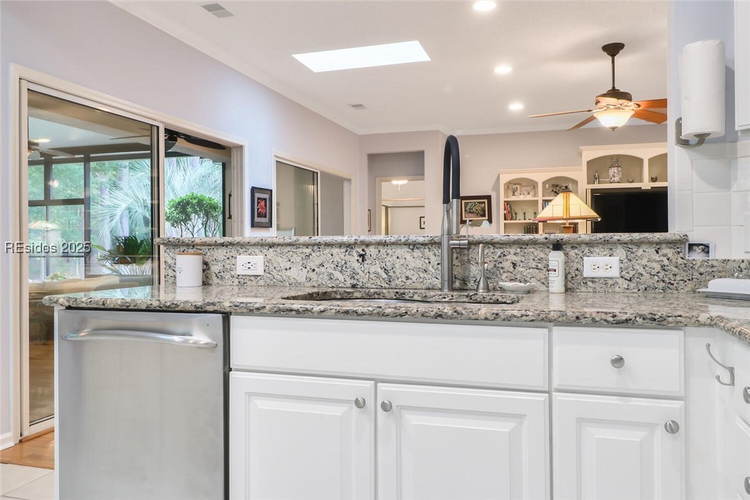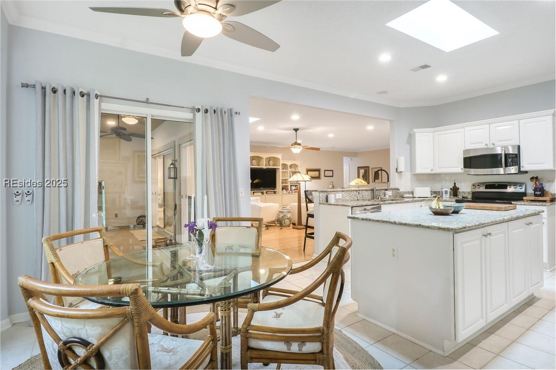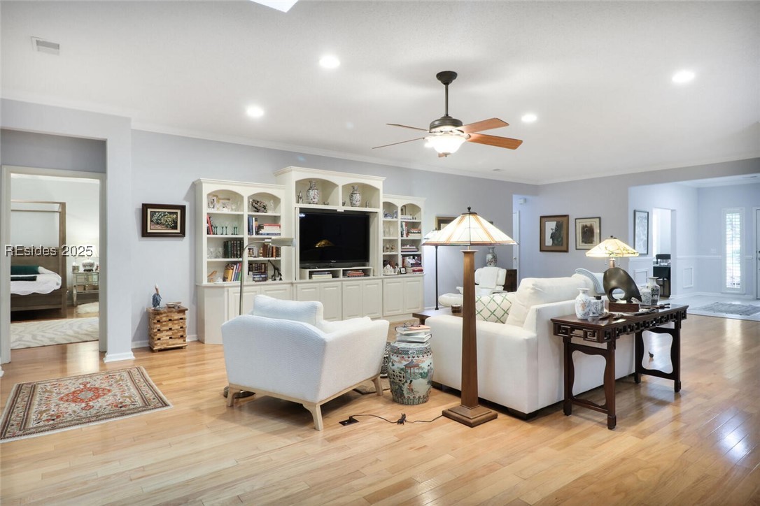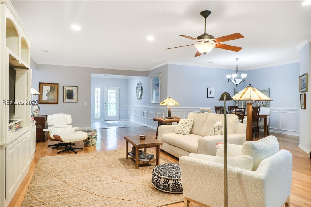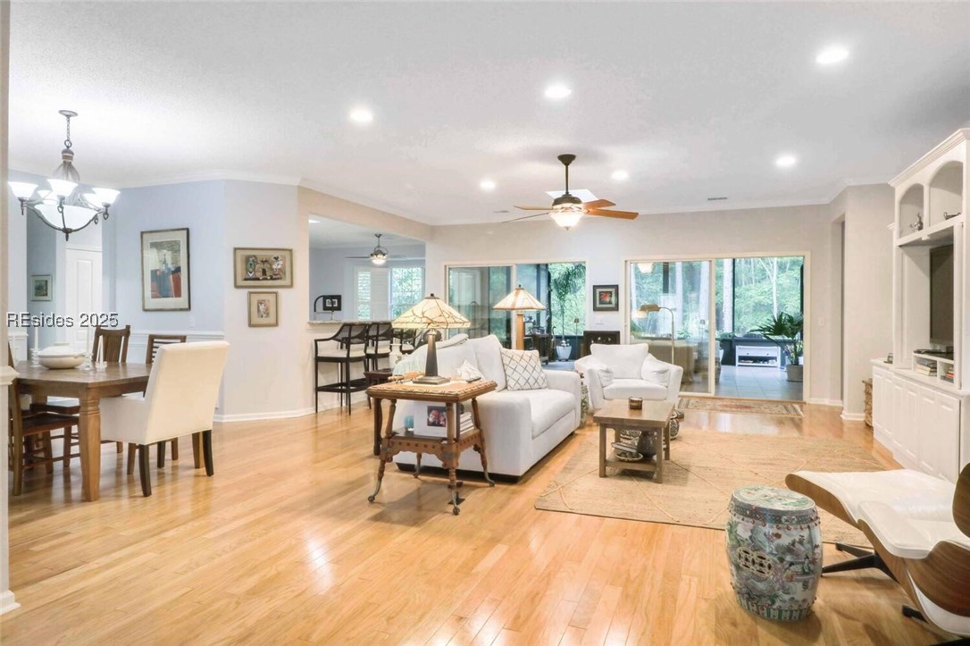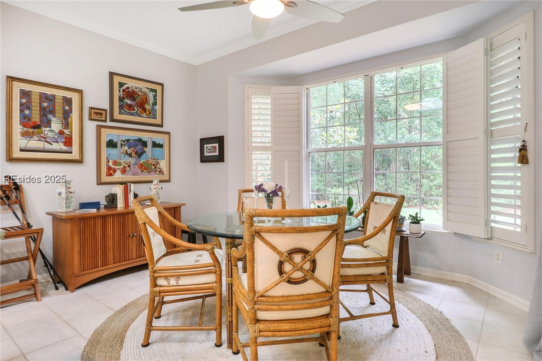 Welcome to this magnificent Wisteria model located in Sun City Hilton Head. One of the largest floor plans offered. Spacious 3 Bedroom, 2 Bath PLUS office/den. Large foyer, wood floors, wainscotting & crown molding adds to the elegance of this home. Eat in kitchen boasts bay window, SS appls, granite counters & Island. Plantation Shutters & plenty of natural light! Enjoy your private wooded back yard from the 22' by 24', hard roof, screened porch. HVAC 2022, Roof 2020, H2O tank 2021. Garage has space for golf cart! Laundry Room features cabinets & utility sink. Paver Driveway. Conveniently located to many of Sun City's fabulous amenities!