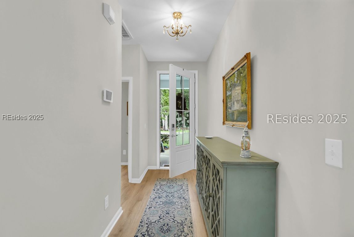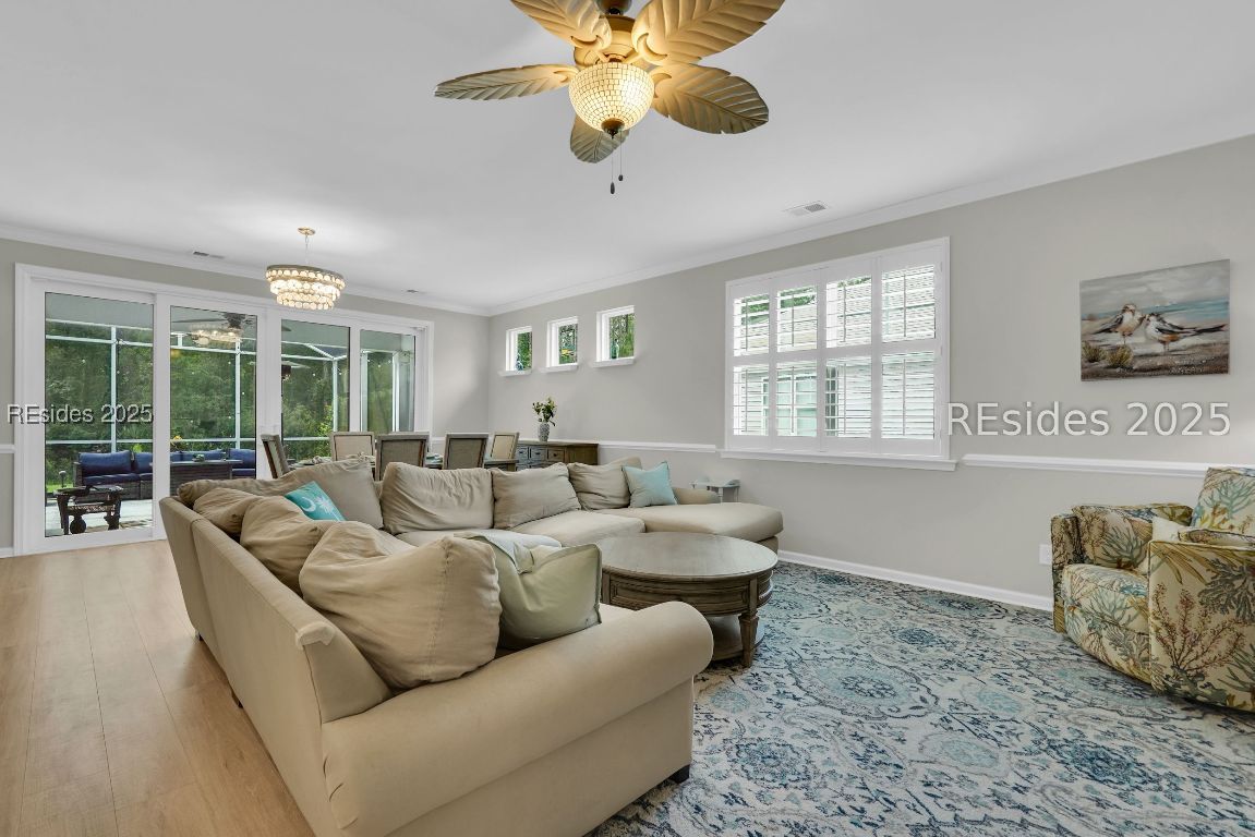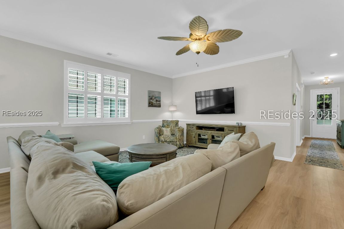 Clifton Model with over 2,500sq ft in the Reserve at Cypress Ridge! Low-maintenance living with lawn care included in this beautifully maintained home, ideally situated on a private wooded lot with peaceful views of the common area across the street. The stone-accented exterior and manicured landscaping provide inviting curb appeal.This spacious home offers 3 bedrooms, 3 full baths, a dedicated office with French doors, and an upstairs loft perfect for guests or additional living space. Move-in ready with neutral tones throughout and no carpet on the main floor for easy living. Gourmet kitchen, featuring large center island, a gas stove, walk-in pantry, and open layout ideal for entertaining. The main-level owner's suite includes an ensuite bathroom, two closets, one with a built-in organizational system.Step outside to a large screened lanai with epoxy flooring and an extended paver patio for your own backyard retreat! Additional features include: Plantation shutters, Upgraded lighting, Crown molding, Finished garage, Attic radiant barrier, Gutters, Tankless water heater, Murphy bed, and Extra storage space. Resort-style community amenities, Close proximity to The New Riverside Barn Park, May River Crossing, and Riverside Village.