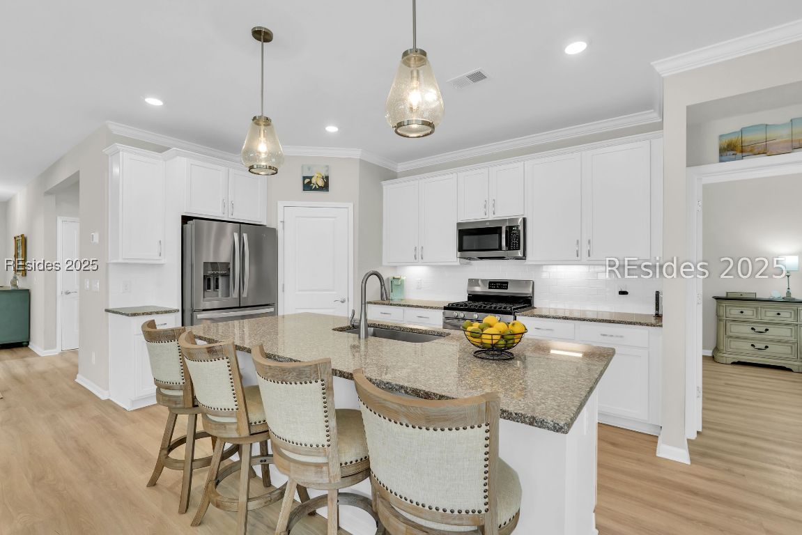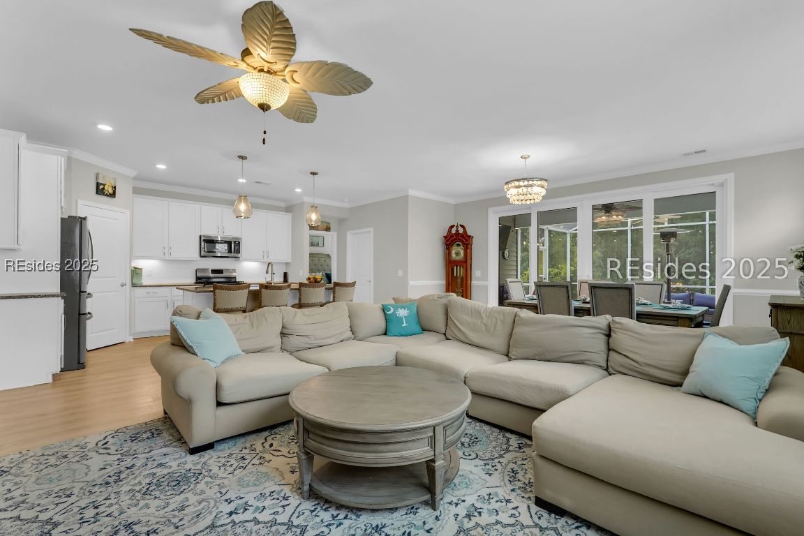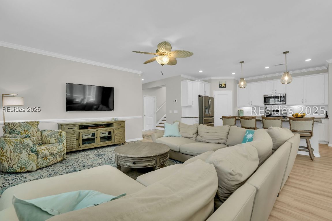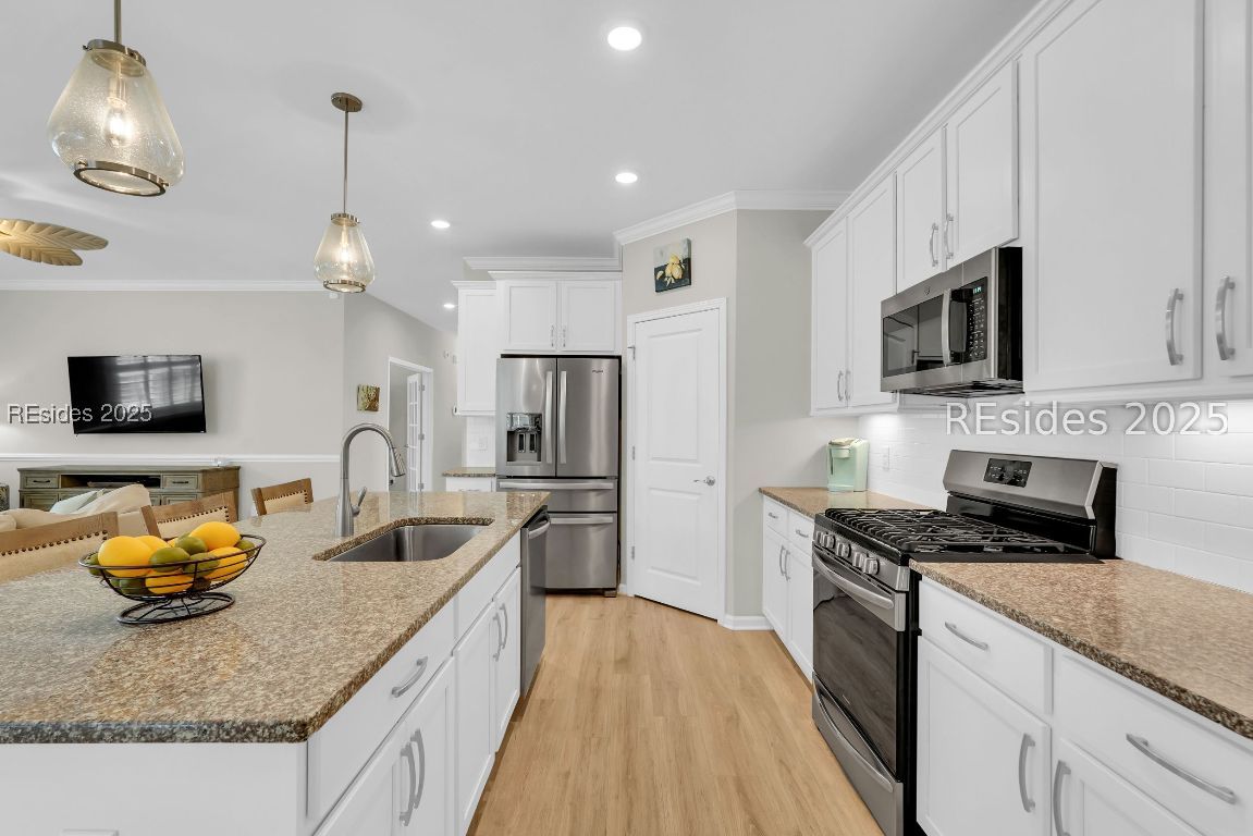 Clifton Model with over 2,500sq ft in the Reserve at Cypress Ridge! Low-maintenance living with lawn care included in this beautifully maintained home, ideally situated on a private wooded lot with peaceful views of the common area across the street. The stone-accented exterior and manicured landscaping provide inviting curb appeal.This spacious home offers 3 bedrooms, 3 full baths, a dedicated office with French doors, and an upstairs loft perfect for guests or additional living space. Move-in ready with neutral tones throughout and no carpet on the main floor for easy living. Gourmet kitchen, featuring large center island, a gas stove, walk-in pantry, and open layout ideal for entertaining. The main-level owner's suite includes an ensuite bathroom, two closets, one with a built-in organizational system.Step outside to a large screened lanai with epoxy flooring and an extended paver patio for your own backyard retreat! Additional features include: Plantation shutters, Upgraded lighting, Crown molding, Finished garage, Attic radiant barrier, Gutters, Tankless water heater, Murphy bed, and Extra storage space. Resort-style community amenities, Close proximity to The New Riverside Barn Park, May River Crossing, and Riverside Village.