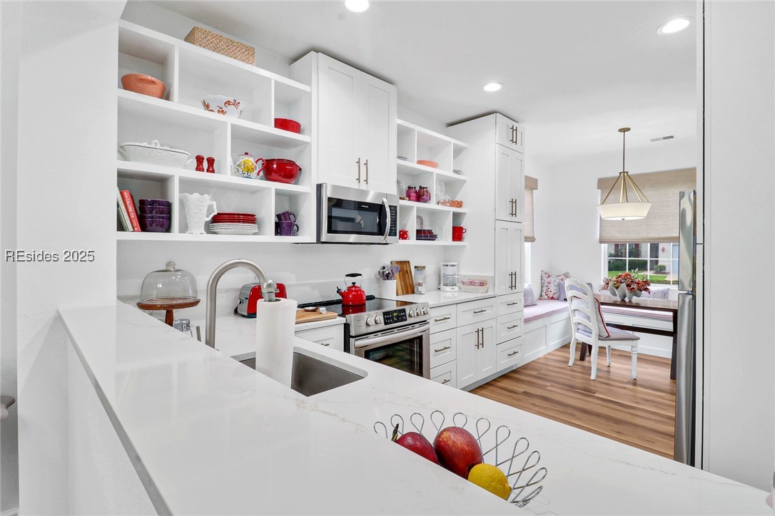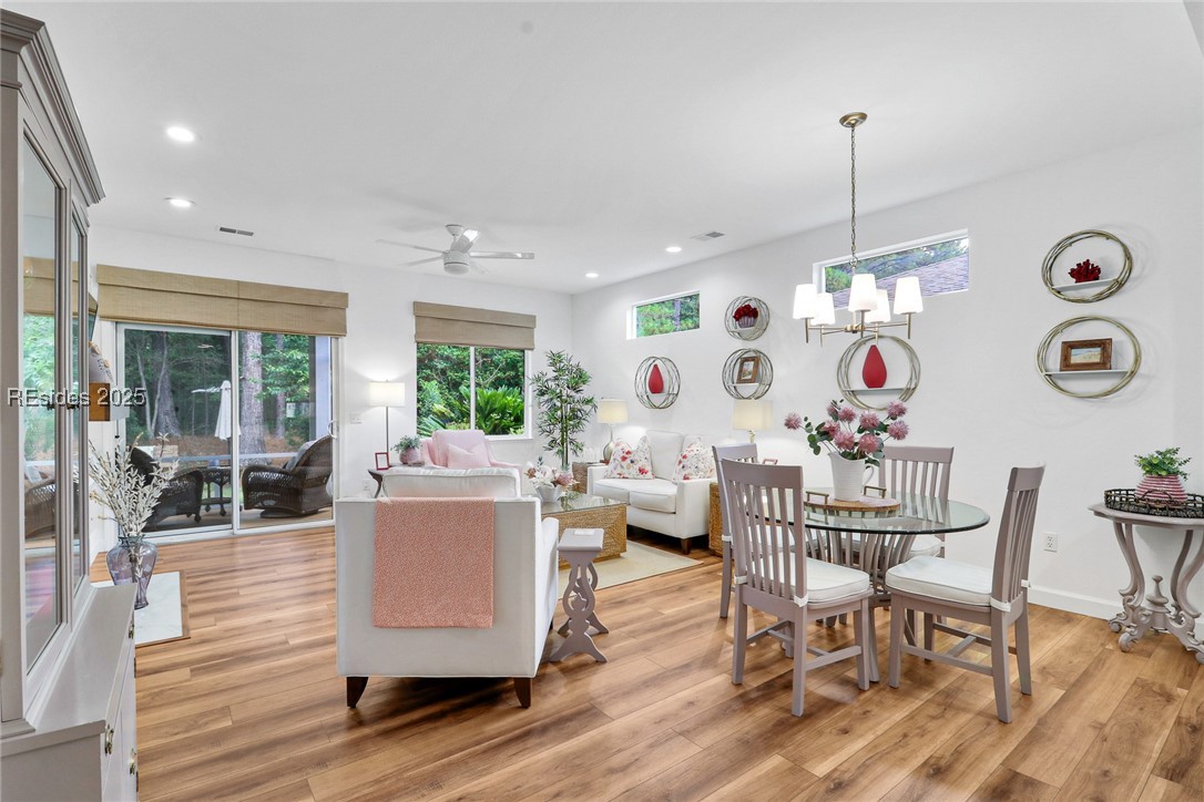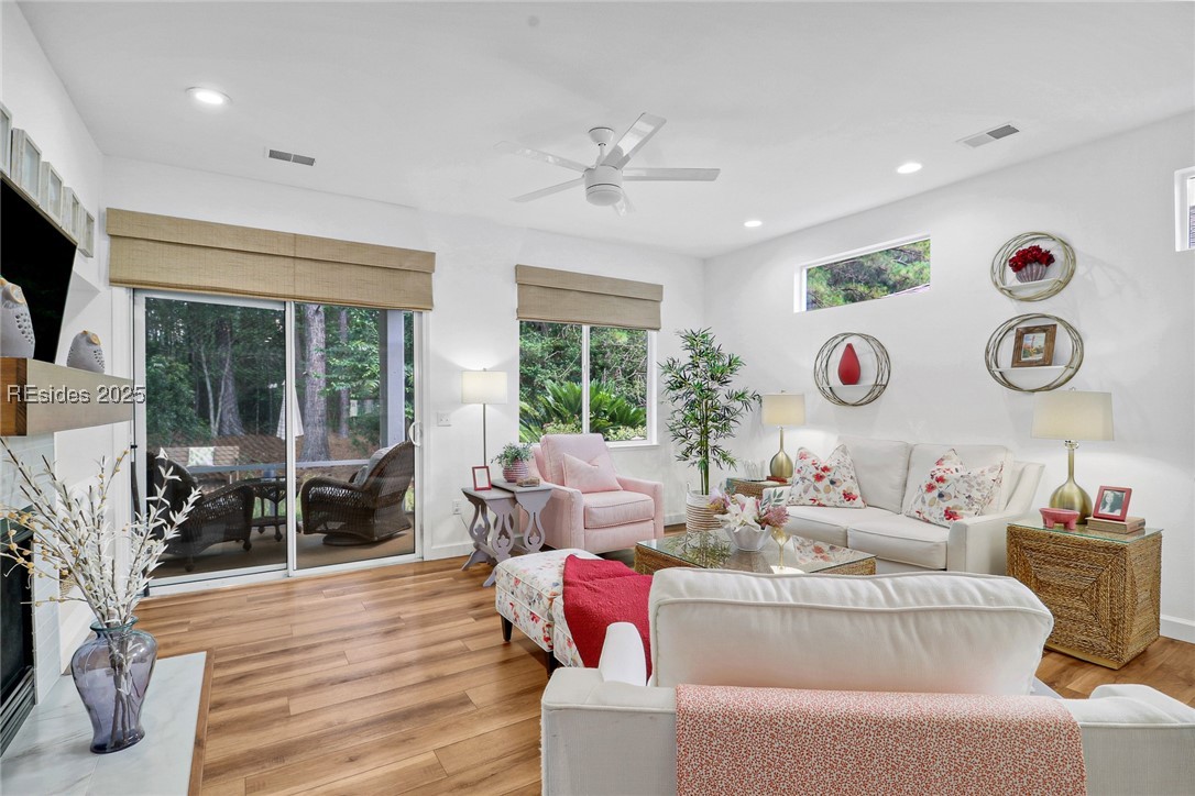 Professionally redesigned by an interior designer, this stunning Sun City home shows like a model. Set on a quiet street near the front gate and amenity center, it offers stylish, low-maintenance living with thoughtful upgrades throughout. Luxury vinyl plank flooring, quartz countertops, and a reimagined layout—including a new laundry room and screened porch with wooded views—add comfort and charm. Light-filled and thoughtfully designed, with mature landscaping and an extremely private backyard, it’s been immaculately cared for by the owner and offers peaceful indoor-outdoor living year-round.
