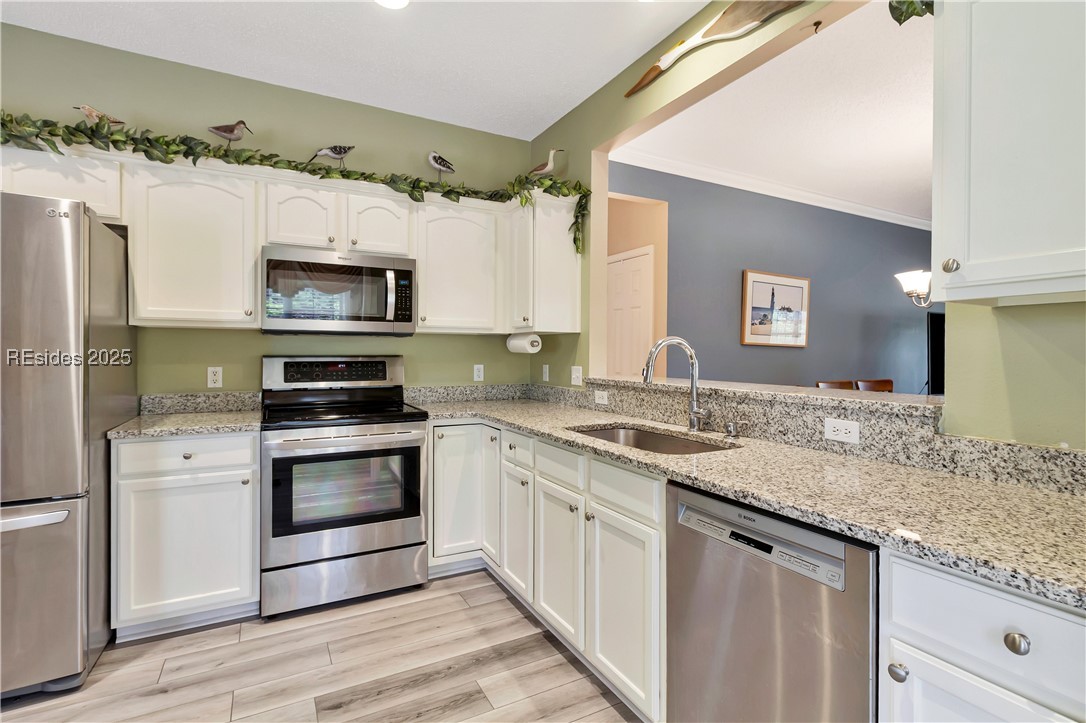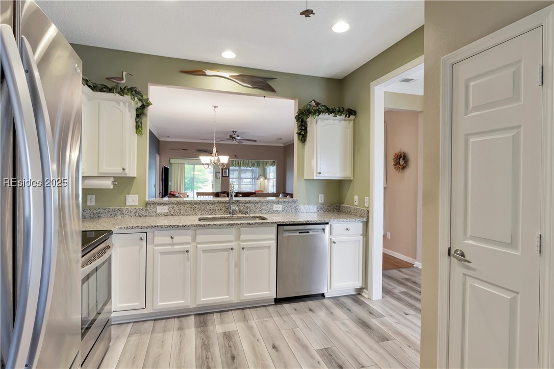 Discover this pristine Heather Model located in Sun City's Orion neighborhood, where friendly greetings come standard. Stainless Steel appliances with granite countertops. Beautiful wood floors throughout this well-maintained 3 bed-flex/2 bath home offering a screen porch/patio and lagoon view. Located on the tax-cheaper Beaufort County side, you have easy back gate access to get to Hilton Head beaches, Old Town Bluffton or Savannah quickly. Enjoy great neighbors and all of the incredible golf and amenities that Sun City has to offer! Community pool and fitness center.