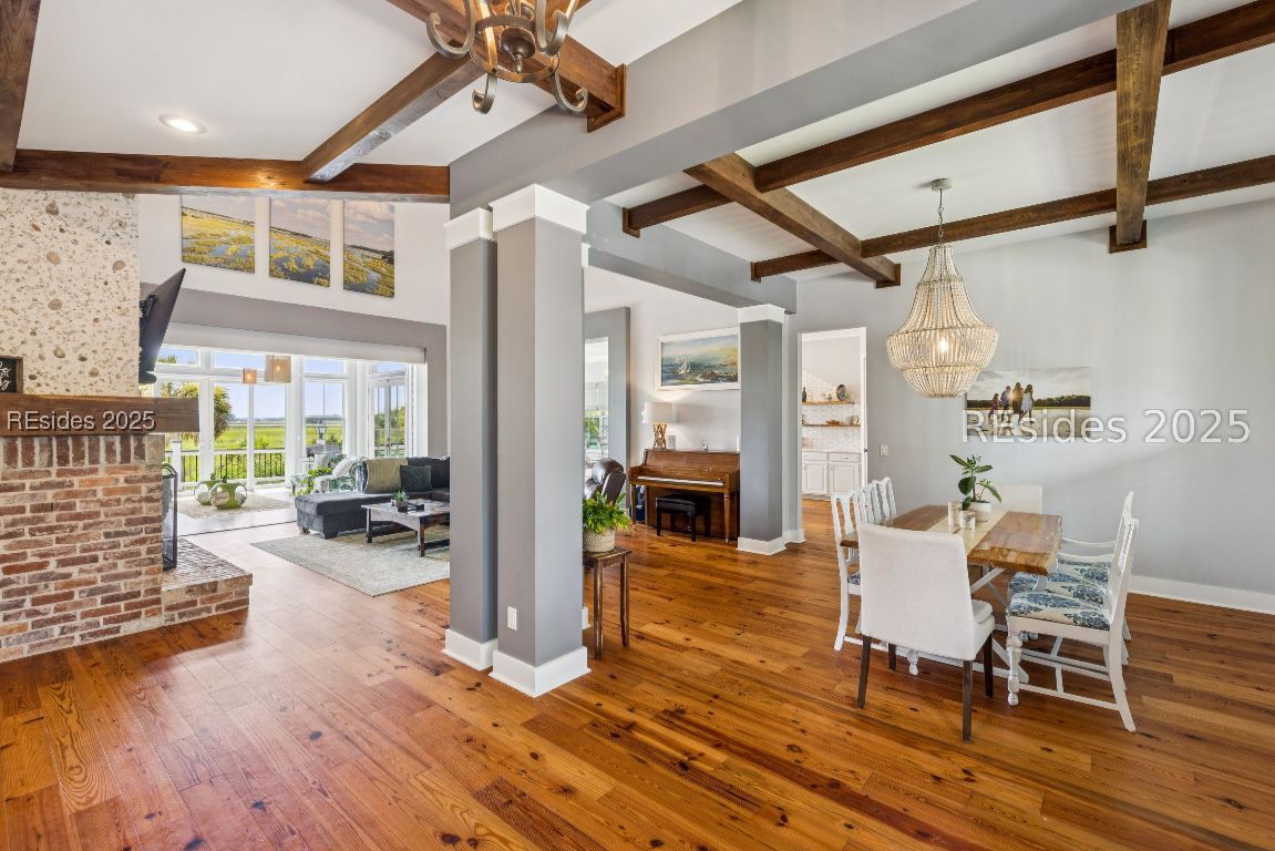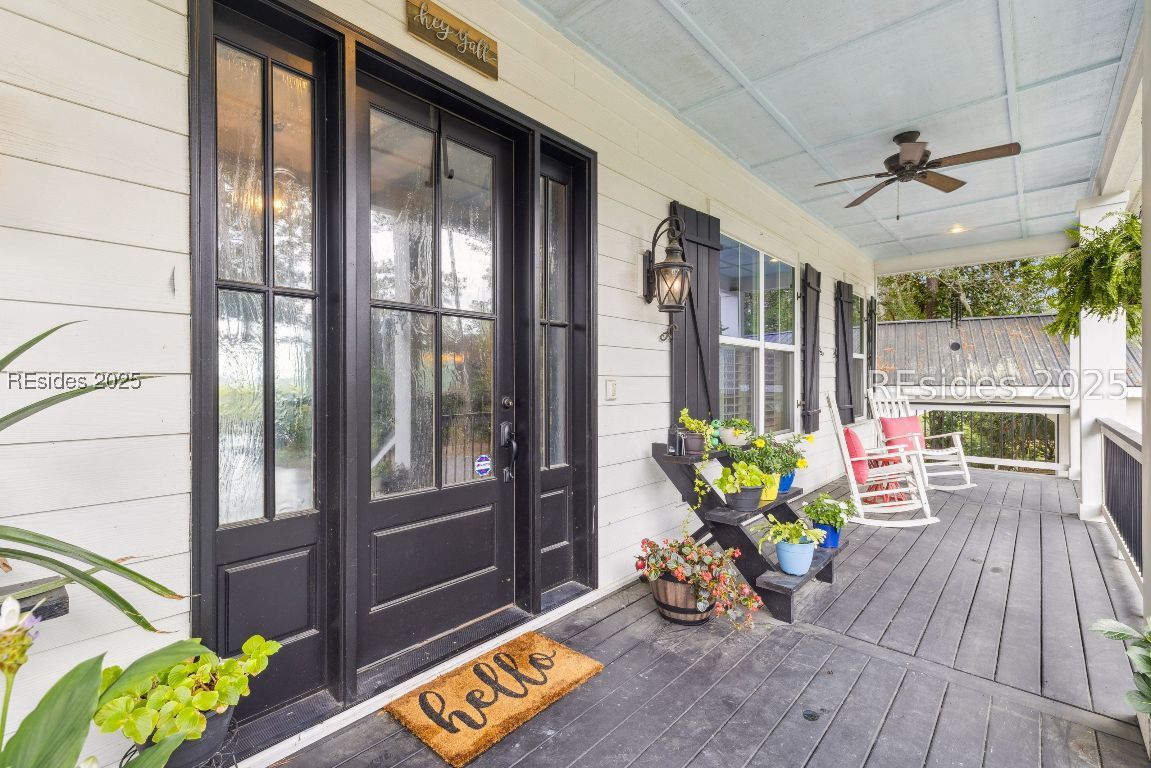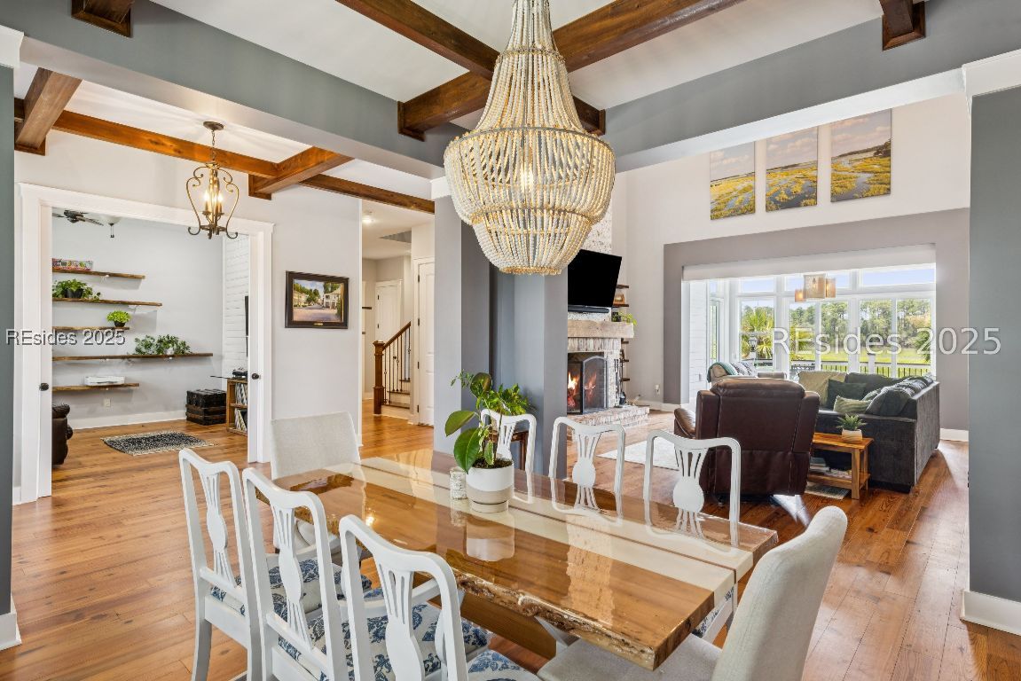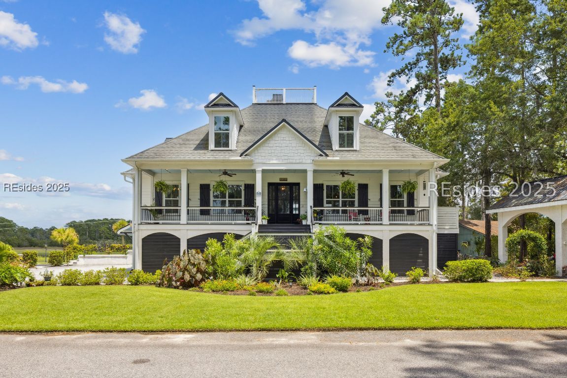 Marshfront sunsets, no HOA, and your own private launch to the May River. This is Lowcountry living at its finest. Set on over half an acre, this custom Bluffton estate offers rare privacy, resort-style outdoor living, and thoughtful design inside and out.Enjoy the freedom of no HOA while taking in panoramic marsh views and golden-hour skies from your backyard or rooftop widow's walk deck. Launch your kayak or paddleboard and cruise to the iconic Oyster Factory Park. Lounge poolside surrounded by mature palms, relax in the separate hot tub, and fire up the grill in your fully equipped outdoor kitchen. Two outdoor showers, a gazebo, and generous porches make this home perfect for entertaining or unwinding in total tranquility.Inside, nearly 4,800 square feet of refined rustic charm includes soaring cathedral ceilings, custom built-ins, and a massive wood-burning fireplace that anchors the great room with warmth and character. The chefs kitchen opens seamlessly to the main living and dining areas, all designed to maximize natural light and stunning views. The first-floor primary suite features spa-inspired finishes and direct access to the outdoor living space. Also on the main level is a dedicated office/library, ideal for remote work or a quiet retreat.Upstairs, two spacious guest bedrooms each offer their own full bath, along with a large media/flex room perfect for movie nights, games, or overflow guests.Additional features include a 3+ car garage, RV/boat carport, workshop, and generous storage throughout. Just minutes from the heart of Old Town Bluffton, this one-of-a-kind home combines riverfront serenity with everyday convenience and timeless Lowcountry style.