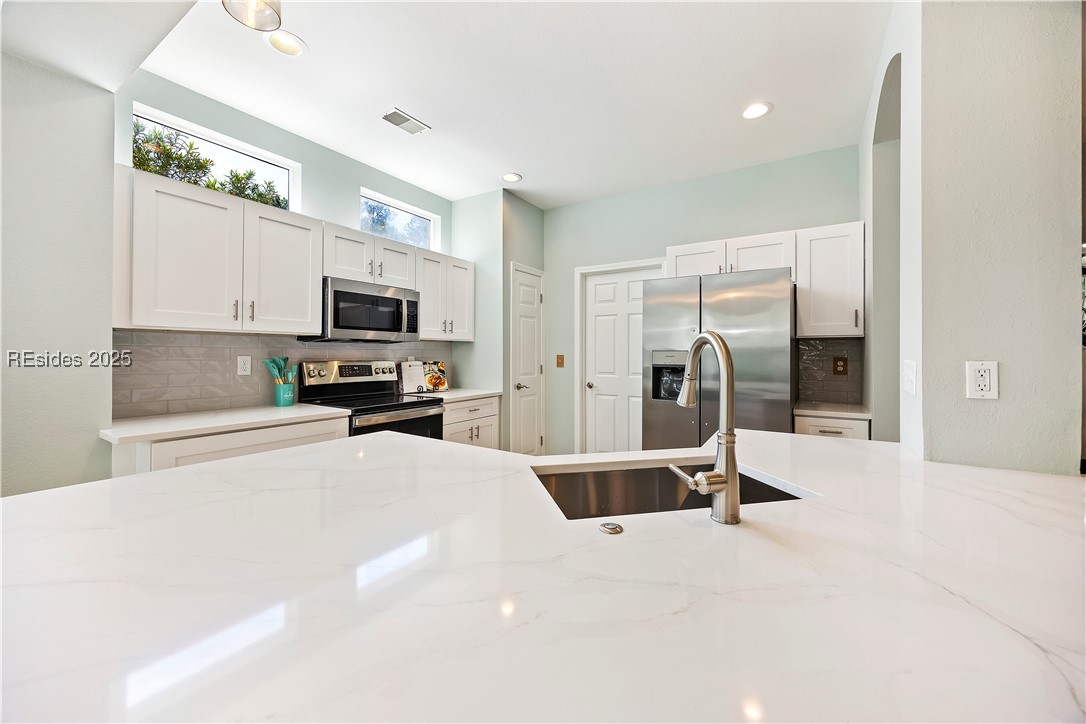 NEW HVAC System to keep you cool. Step inside this gorgeously updated Camden/Shenandoah model in Sun City HH. This 2BR/2BA gem features new LVP flooring, fresh interior paint, & a beautifully modernized kitchen w/ stainless appliances and sleek quartz counters. Both bathrooms have been stylishly revamped, and a light-filled Carolina Room offers the perfect spot to relax. Upgrades include custom closet systems, enhanced garage storage, composite exterior, & a 2023 roof w/ leaf guard system. Ideally located near golf, pools, dining & more—this home is truly move-in ready. Centrally located between Beaufort, Hilton Head & Savannah. Welcome Home!
