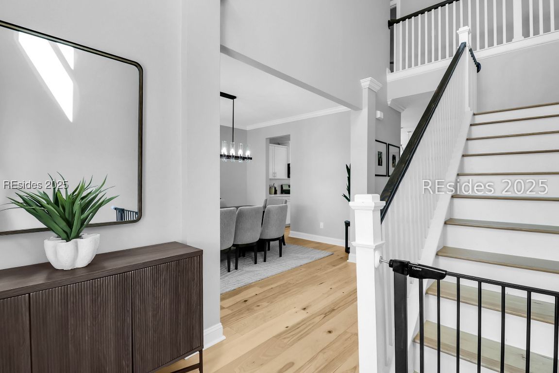 Welcome to this beautifully maintained 5-bedroom, 3-bath home in one of Bluffton's most desirable neighborhoods! Featuring upgraded 100% waterproof Raintree hardwood flooring throughout, the main floor offers an open-concept kitchen and living area, plus a guest bedroom and full bath, ideal for visitors or multi-generational living. Upstairs, you'll find the spacious primary suite with double vanities and a large walk-in closet and three additional bedrooms, one of which is large enough to serve as a flex space for a playroom, office, or second living area. Step outside to a backyard built for entertaining, complete with an extended concrete patio, with a 20' x 15' steel gazebo with ceiling fans, and a fully fenced yard with upgraded landscaping. Additional enhancements include upgraded light fixtures and faucets throughout, a new dishwasher, and an extended concrete driveway. Ideally located near Old Town Bluffton, Savannah, and Beaufort, this home combines comfort, quality, and unbeatable convenience!