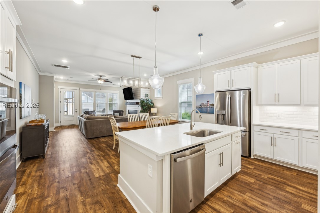 Experience Lowcountry living in the heart of Oldfield’s Lakeside Village—Bluffton’s most charming neighborhood with premier amenities including golf, equestrian center, deep water access, on-site dining, scenic trails, and a resort-style pool. The Moreland plan is perfect for entertaining, featuring a chefs kitchen with large island and great room opening to a screened porch. Enjoy preserve views from your front porch with gas lanterns and direct access to the walking trail just steps away. First-floor owner’s suite with spa-like bath and spacious closet. Upstairs: Jack & Jill bedrooms, additional private ensuite, and versatile rec room/loft.