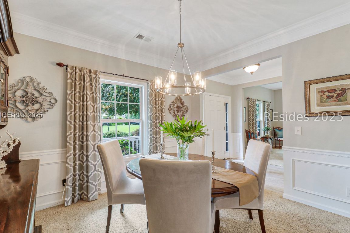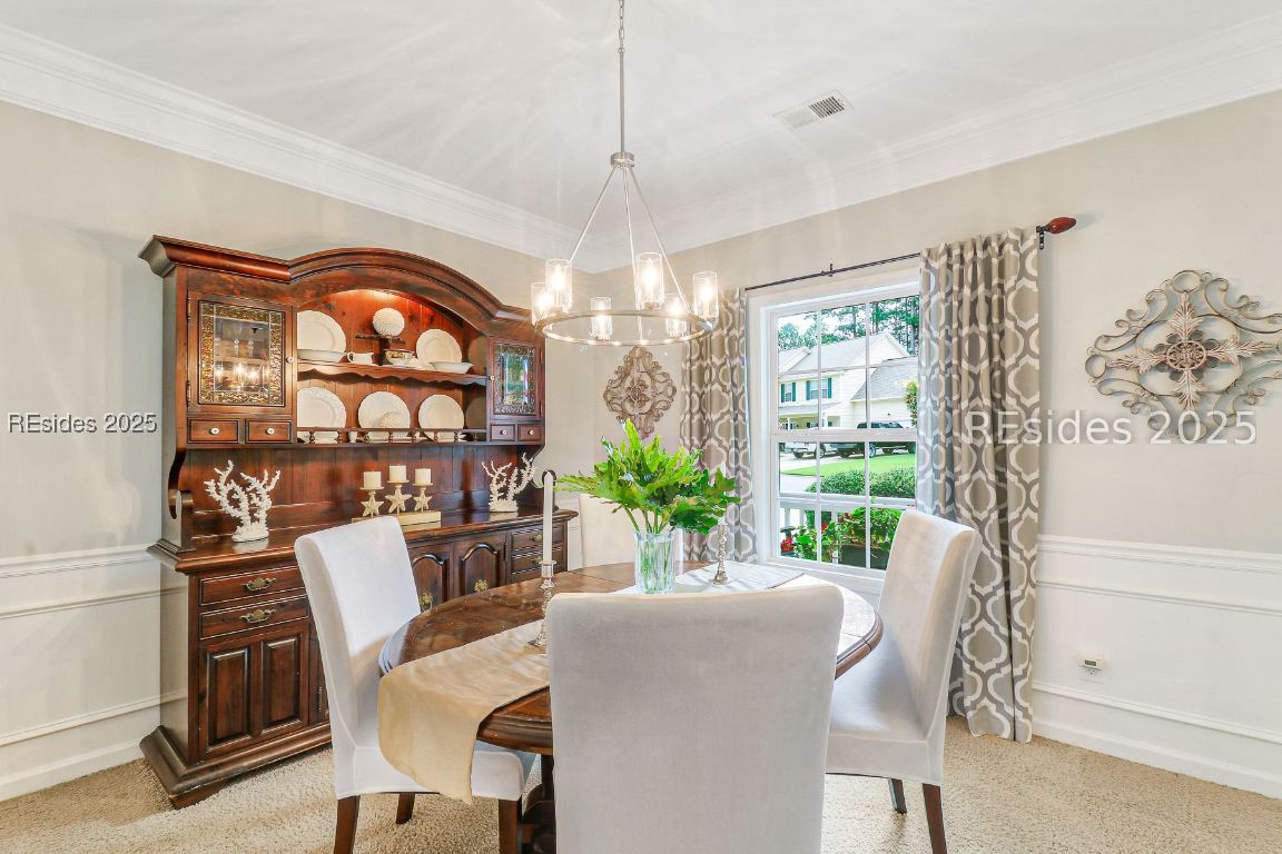 Welcome to the most upgraded and well-maintained home in all of Woodbridge! Priced as the lowest per square foot in the neighborhood, this spacious 5-bedroom, 3-bathroom beauty with a 2-car garage sits on a large homesite and has never been rented & lovingly owned by just one owner. The stunning, renovated kitchen features a large island, farmhouse sink, 42" cherry cabinets, under-cabinet lighting, and stainless steel appliances. The primary suite is conveniently located on the first floor, with a tray ceiling, dual vanities, and an expanded closet. Upgrades abound: smooth ceilings throughout, luxury tile floors, quartz countertops, custom lighting with dimmer switches in nearly every room, and ceiling fans throughout. Enjoy additional living space with a finished bonus room, full bath, and added dormer. Outdoors, relax on the 19'6" x 35' Lowcountry paver patio, enjoy irrigation and lush landscaping, and appreciate added privacy from mature plantings and 7 trees. This home also features updated energy-efficient HVAC units, bonus room has central air, but was also plumber by builder for a future split A/C, and a relocated water heater for safety. Woodbridge offers fantastic amenities, including a beautiful community pool and park. Ideally located near top dining, fitness centers, shopping, and entertainment... this is Lowcountry living at its finest!