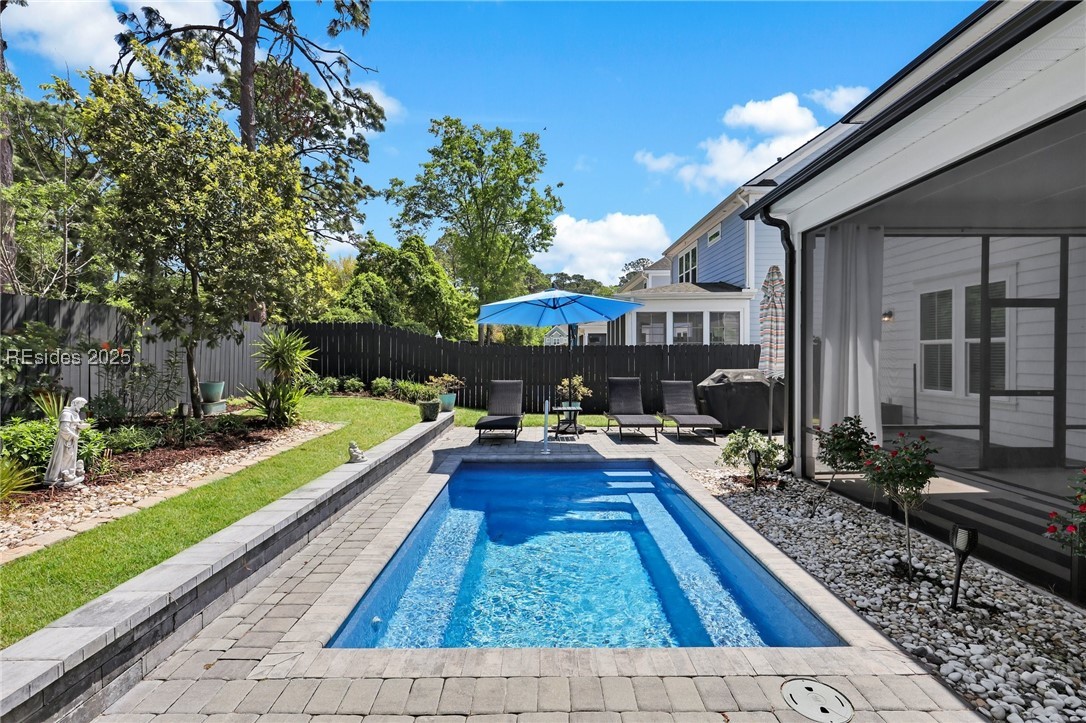This 3-bed, 2.5-bath home, at the Walk in Bluffton, presents you with a rare opportunity of turnkey living in a sought-after location, easily accessible by foot or golf cart to Downtown Bluffton. Step inside to an inviting, bright, open concept living space featuring luxury vinyl plank flooring throughout & a gourmet kitchen equipped with gas stove & sleek finishes. The main living area seamlessly extends to a private screened porch. Upstairs find added versatility with a spacious flex space. Outside, your backyard oasis awaits with a private pool & fully fenced yard—perfect for enjoying warm Lowcountry days in privacy & style.
