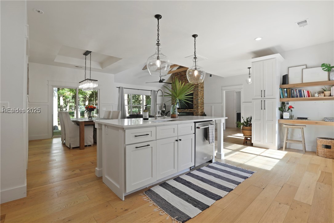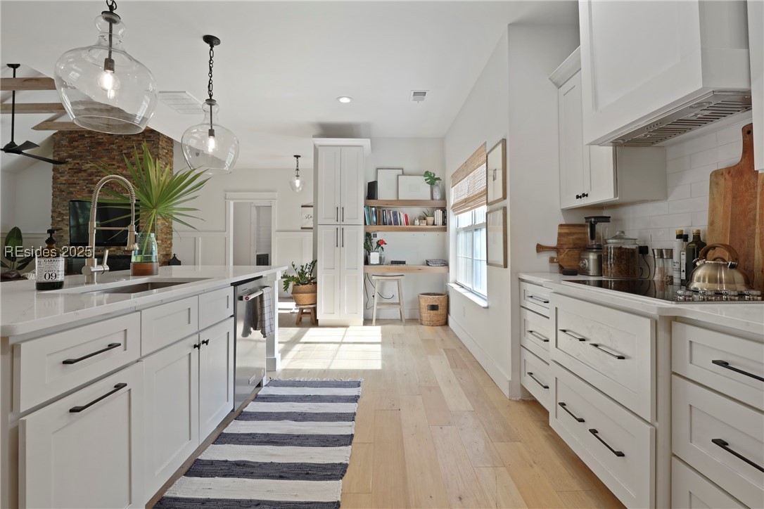 Fully updated single-story home in Rose Hill with an open-concept layout and modern engineered hardwood flooring. The living room features exposed ceiling beams and a cozy fireplace. The kitchen includes quartz countertops, custom cabinets, kitchen aid appliances, and a large island open to the dining area. Split-bedroom layout offers privacy. The primary suite boasts a renovated en suite with a custom-marble walk-in shower and oversized closet. Private lot with mature trees and a spacious backyard perfect for entertaining or relaxing—local deer often visit. Lot backs up to 50 scenic acres of Bill Baker Park with views from every room!