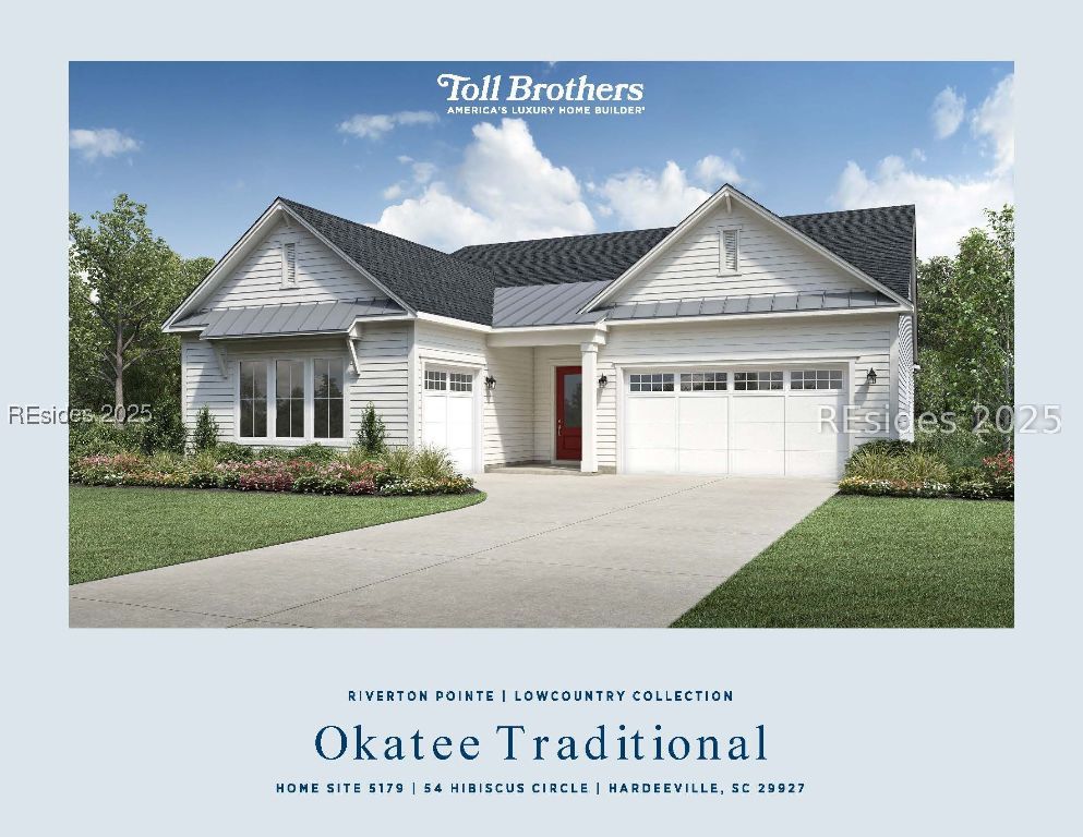 This beautiful 3-bedroom Okatee floorplan boasts many extras including a fireplace, tray ceilings in the foyer, great room, and primary bedroom, huge multi-slide doors to the patio, and other design touches throughout. Riverton Pointe is a staff gated new-home community that offers an array of amenities including a Jack Nicklaus Design golf course, driving range, pro shop, restaurant, swimming pool, tennis, fitness center, future clubhouse, pickle ball, bocce ball, social events and much more! This homes projected completion month is January, which is subject to change.