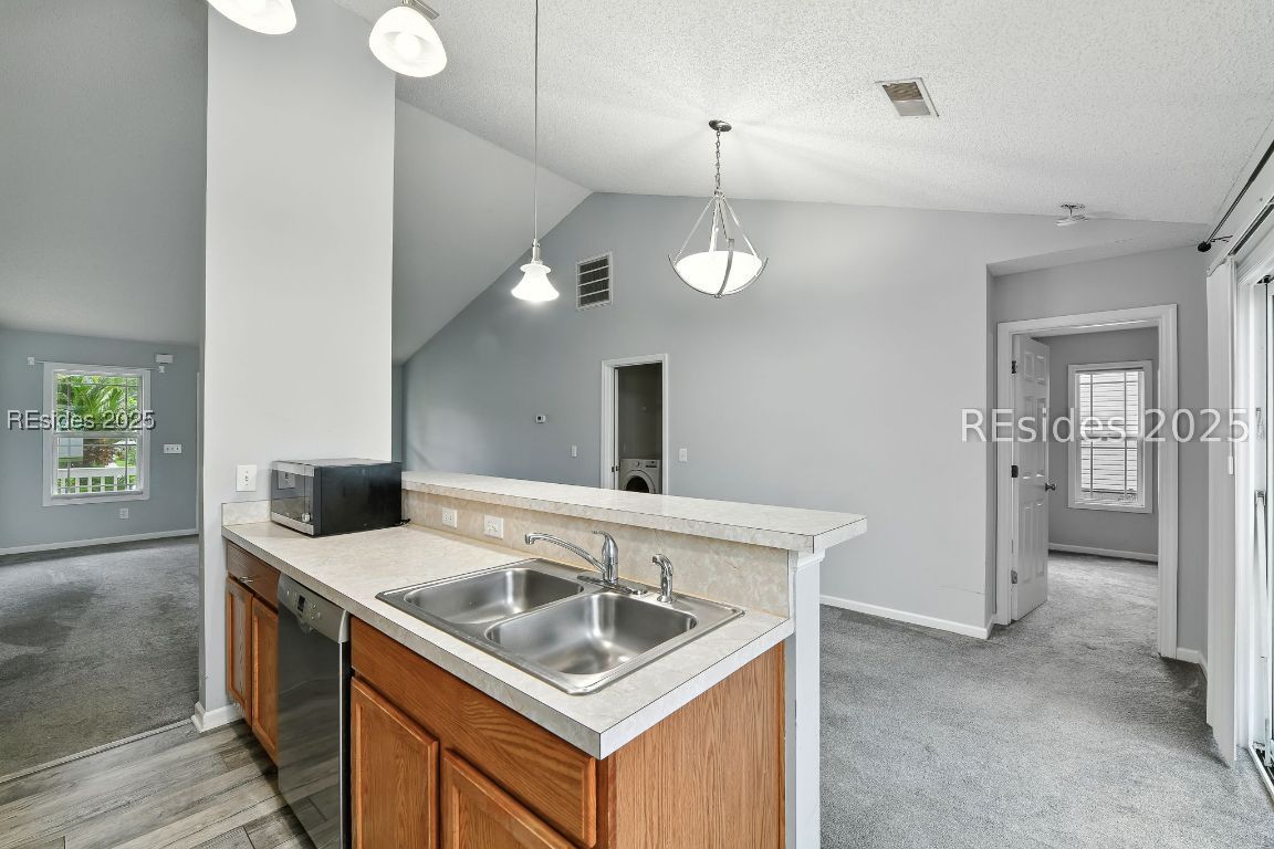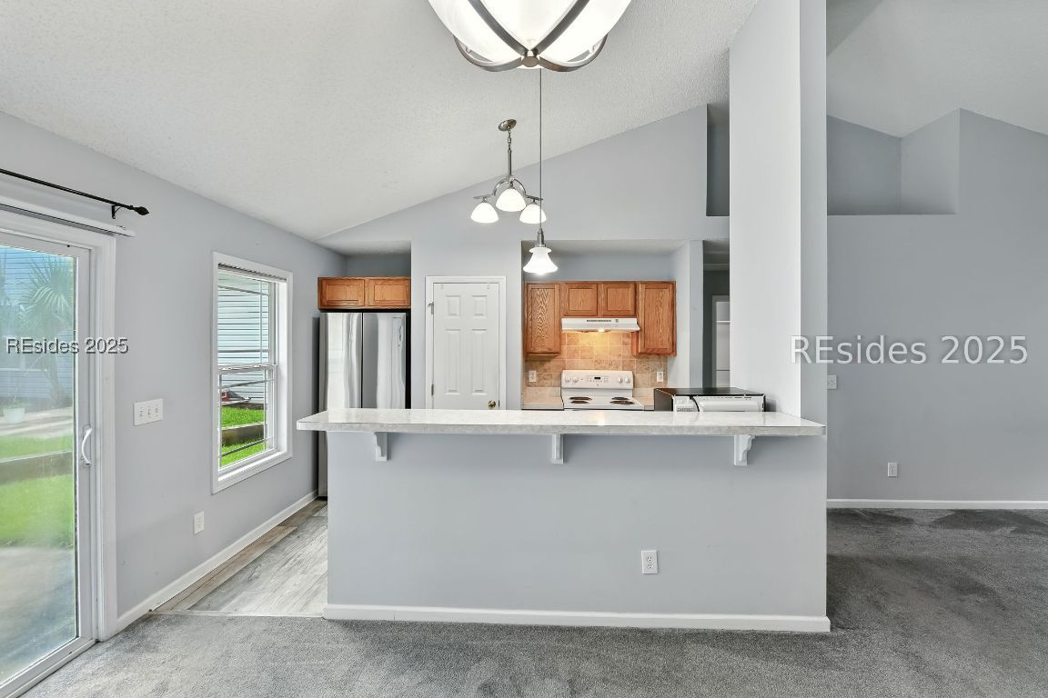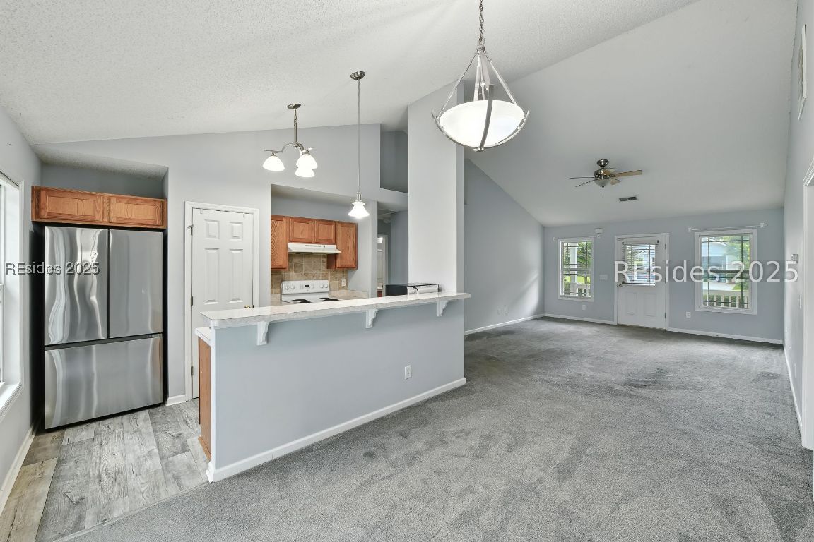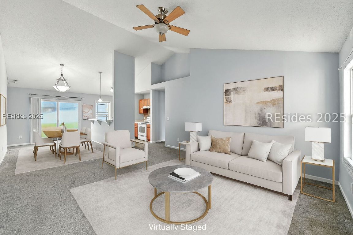 Outstanding value on this well-located home in the heart of Bluffton. Split bedroom floor plan on this three-bedroom, two bath home with soaring ceilings, nice kitchen, and a nice primary bedroom/bathroom. Some LVP flooring and carpet in the bedrooms. One car garage. Corner lot. Community pool and playground. Near shopping, schools, and all that Bluffton has to offer!