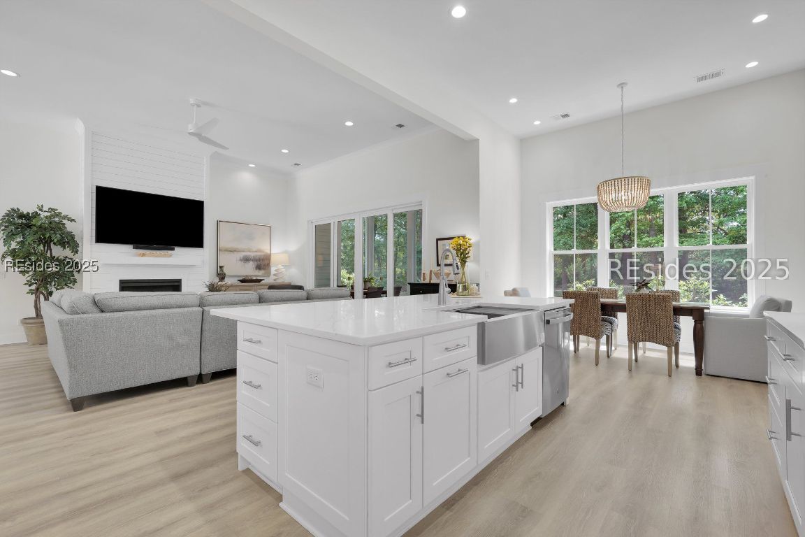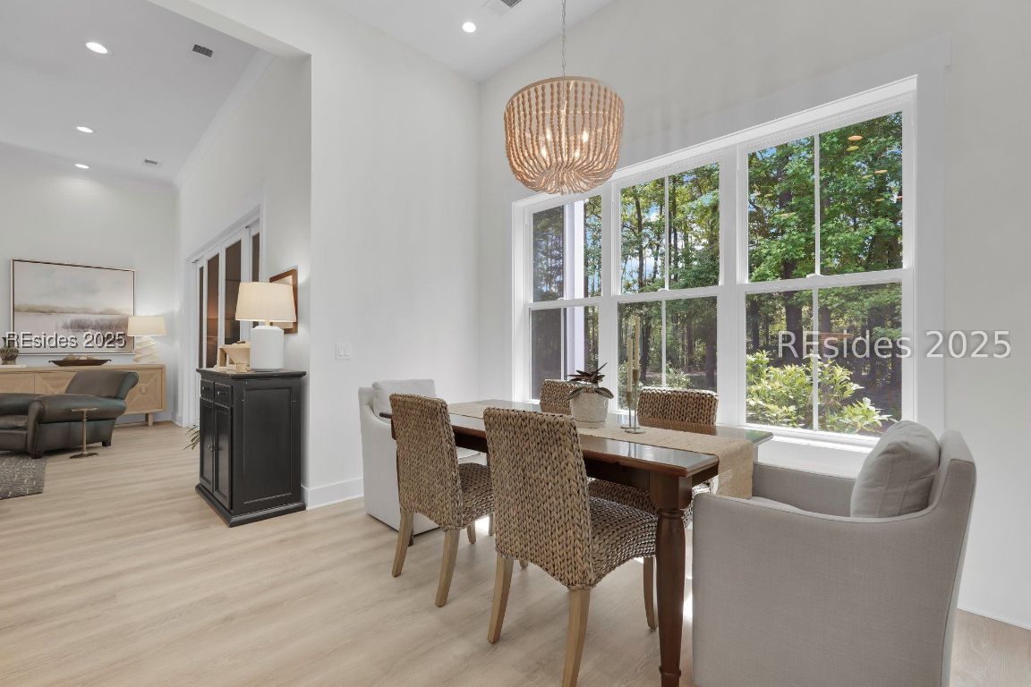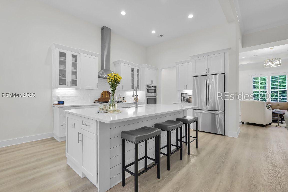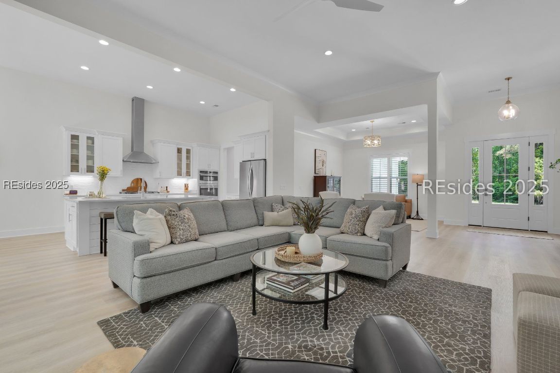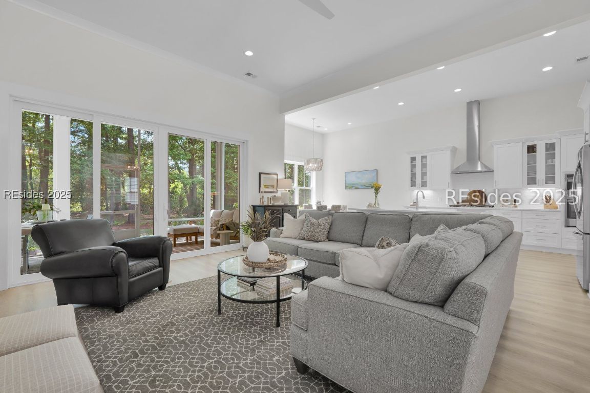 Better act quickly this immaculate 2022-built home is move-in ready and brimming with designer touches. The light-filled open floor plan boasts soaring 12 ceilings, elegant shiplap accents, and a gourmet kitchen with quartz countertops, a Monogram gas cooktop, and crisp white cabinetry. The spacious primary suite offers a spa-like bath with a beautiful zero-entry shower, while two first-floor guest rooms each enjoy private ensuite baths. Upstairs, you'll find a fourth bedroom with its own bath and exceptional storage, including a walk-in floored attic. Plantation shutters grace every window, and a relaxing screened porch invites you to enjoy the Lowcountry breeze. Located in the sought-after gated community of The Crescent with a low HOA fee you'll enjoy resort-style amenities including a pool, pickleball, and tennis courts, all just minutes from Hilton Head Islands pristine beaches.